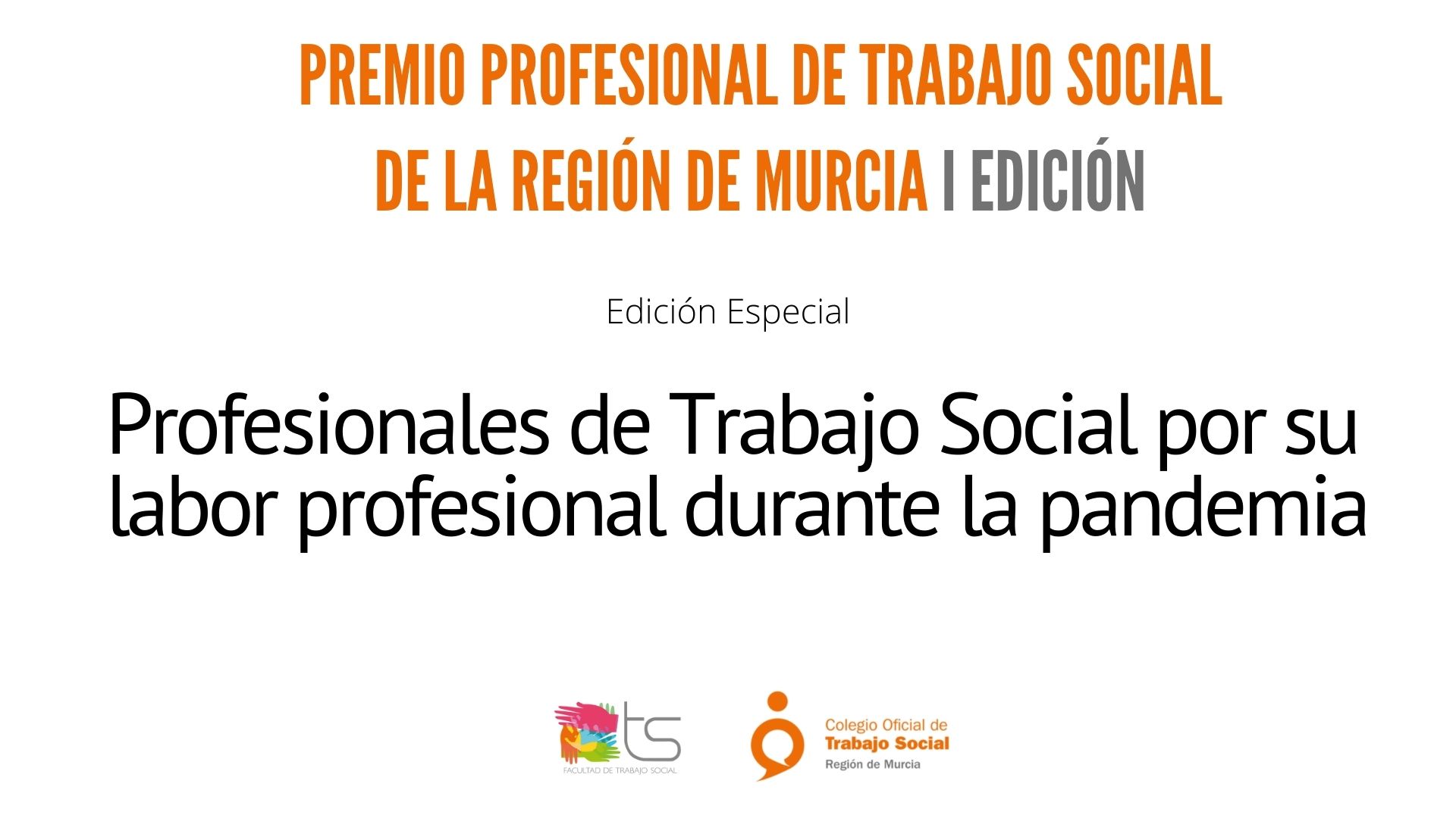 Al objeto de visibilizar en el conjunto de la sociedad la profesión de Trabajo Social y hacer público reconocimiento de la trayectoria profesional y/o de las acciones con repercusión social emprendidas por trabajadores/as sociales colegiados/as en la Región de Murcia que desempeñe o haya desempeñado su labor profesional en la Región, la Junta de Gobierno del Colegio Oficial de Trabajo Social de la Región de Murcia, y la Facultad de Trabajo Social de la Universidad de Murcia acuerdan convocar el “Premio Profesional de Trabajo Social” que se regula según las presentes bases, de aplicación a partir de la segunda edición.