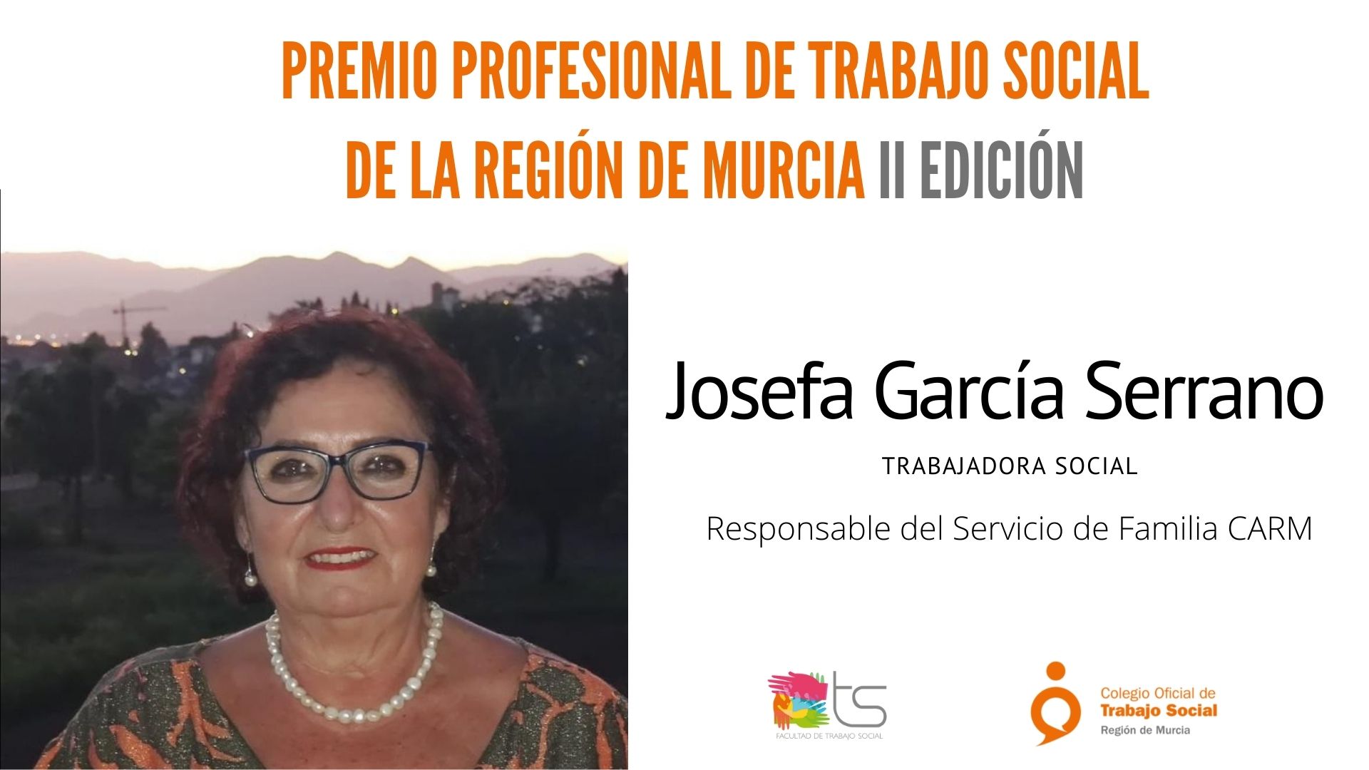 II Edición 16 de marzo de 2022Premiada: la persona premiada es Dña. Josefa García Serrano, Responsable del Serivicio de Familia de la Dirección General de Familias y Protección de Menores de la Comunidad Autónoma de la Región de Murcia. |