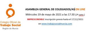 Para prever la asistencia a la Asamblea General y garantizar las medidas necesarias para realizarla en la modalidad on line, es necesaria la inscripción de las/os colegiadas/os que deseen asistir en el siguiente enlace antes de las 12:00 hs del día 17/05/2021: