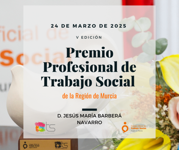 El Colegio de Trabajo Social de la Región de Murcia y la Facultad de Trabajo Social de la Universidad de Murcia comunican que el galardonado, en la V Edición Premio Profesional de Trabajo Social de la Región de Murcia es D. Jesús María Barberá Navarro.