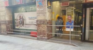 Denuncian a un banco de Murcia por colocar barreras "antimendigos" en su fachada