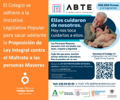 El Colegio se adhiere a la iniciativa de La Asociación por el Bienestar de la Tercera Edad (ABTE CANDELARIA) que ha presentado una Iniciativa Legislativa Popular para sacar adelante una Proposición de Ley Integral contra el Maltrato a las Personas Mayores. Esta, tiene como objetivo que el Congreso de los Diputados debata y apruebe una norma específica que garantice los derechos, la dignidad y el bienestar de las personas mayores.