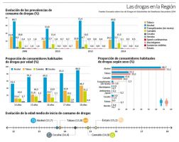 En cuanto a las drogas legales (alcohol y tabaco) se ha visto reducido su consumo tanto experimental, como en el último año y mes con respecto a los datos del 2012. El consumo de cánnabis en Murcia en este sector de población es inferior a la media nacional, situada en un 18 por ciento, mientras que en Murcia es del 15,5.