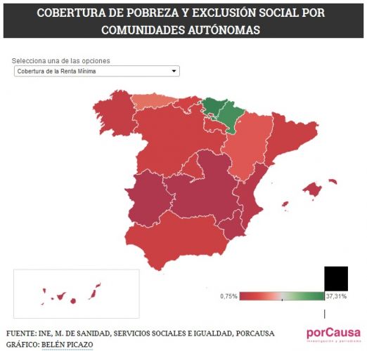 La desigualdad territorial es tan grande que el País Vasco invirtió un 43% del total estatal en 2013, la competencia autonómica de estas rentas actúa exacerbando la inequidad.