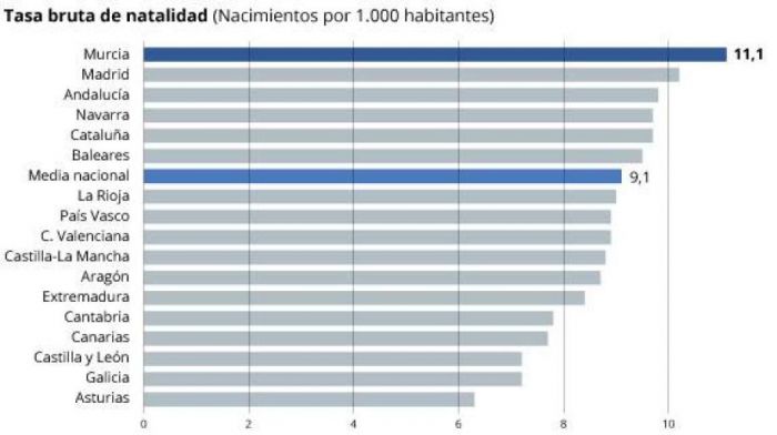 Murcia lideró el año pasado la natalidad en España pese al descenso de población inmigrante.