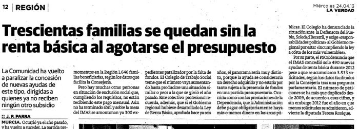 Querella del PSOE contra Valcárcel y Garre por no regular la Renta Básica en siete años