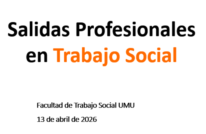 El próximo lunes 13 de abril, el Colegio ofrecerá una charla en el salón de actos de la Facultad de Trabajo Social de la Universidad de Murcia, dirigida al alumnado de 4º curso interesado en conocer las diferentes salidas profesionales en el ámbito del Trabajo Social y su acceso a las mismas.