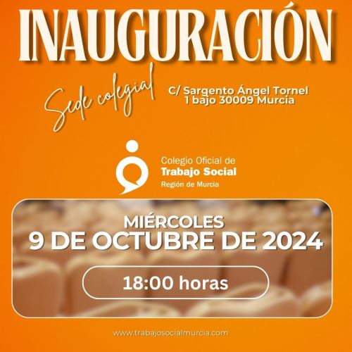 El Colegio inaugura la nueva sede colegial el 9 de octubre de 2024 a las 18:00 horas, situada el C/Sargento Ángel Tornel, 1 bajo 30009 Murcia.
