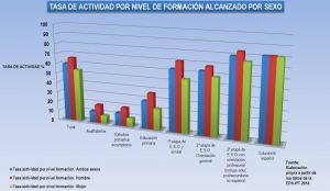 Las mujeres con educación superior suponen actualmente un 47,2% sobre el total de las ocupadas en el mercado laboral. Este porcentaje se traduce en que uno de cada cinco empleos en España es realizado por una mujer con educación superior, idéntica proporción para los hombres, según se desprende de la última Encuesta de Población Activa (EPA) perteneciente al cuarto trimestre del 2014. En esta línea, podemos afirmar que el incremento de formación es el elemento clave que más iguala a hombres y mujeres en el mercado laboral. Si tomamos la tasa de actividad que mide la población de 16 años, o más, que trabaja o busca empleo sobre el total de población activa, la tasa femenina reduce la diferencia respecto a la masculina a medida que aumenta el nivel educativo hasta igualarse por completo en el nivel de educación superior, donde ambos sexos se sitúan en el 80% frente al 59,77% del conjunto total de ocupados.