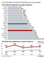 Las ONG alertan de las desigualdades entre comunidades. El norte de España soporta menores tasas de pobreza, en contraposición con el sur. La situación en Navarra o País Vasco contrasta con Andalucía, Valencia y Murcia. «Es difícil comprender la clase de cohesión territorial que permite que en un mismo país existan regiones que multipliquen por tres, o incluso por cuatro, las tasas de pobreza de otras», denuncian las organizaciones sociales.