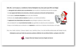 ¡Trabajamos para que todas las personas disfrutemos de unas felices fiestas y próspero año 2016!