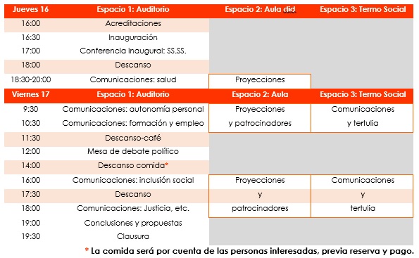 Espacio 1: Auditorio (programa principal, además, hay DOS espacios paralelos con comunicaciones, tertulia y otras cuestiones).