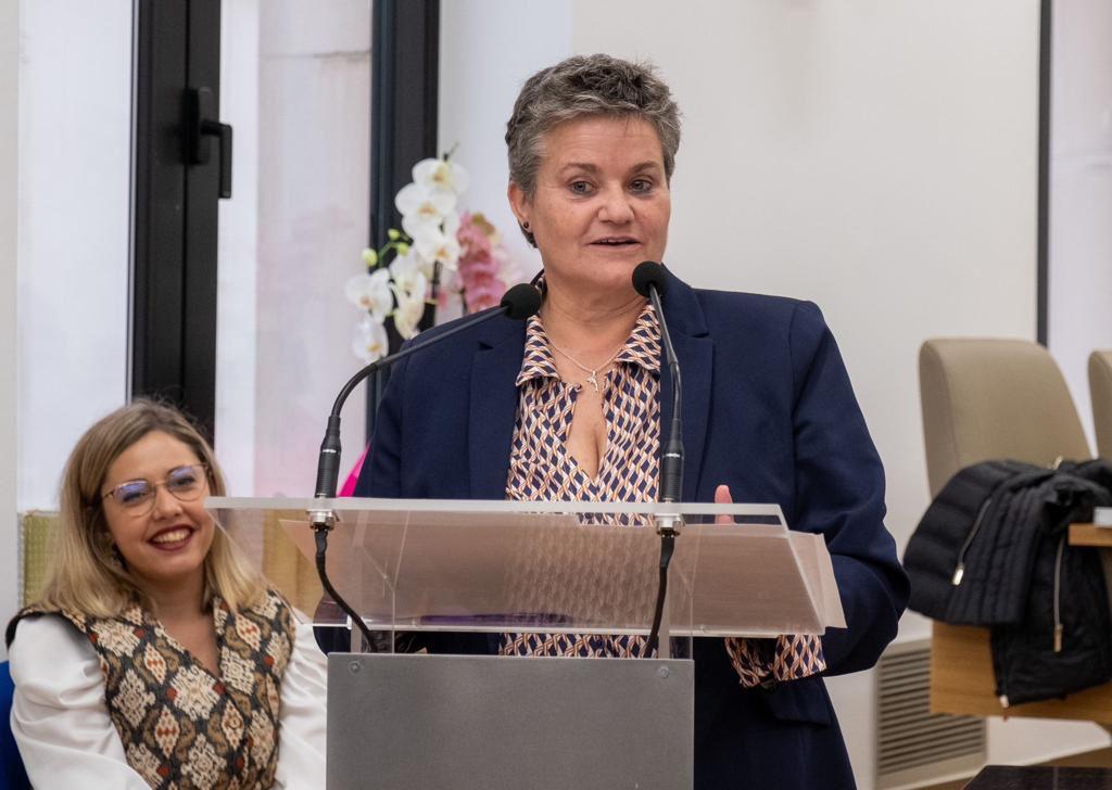 La presidenta del Consejo General del Trabajo Social, Emiliana Vicente González, participa en el acto con la entrega de menciones a las presidentas/es que han pasado por el colegio a lo largo de estos años.