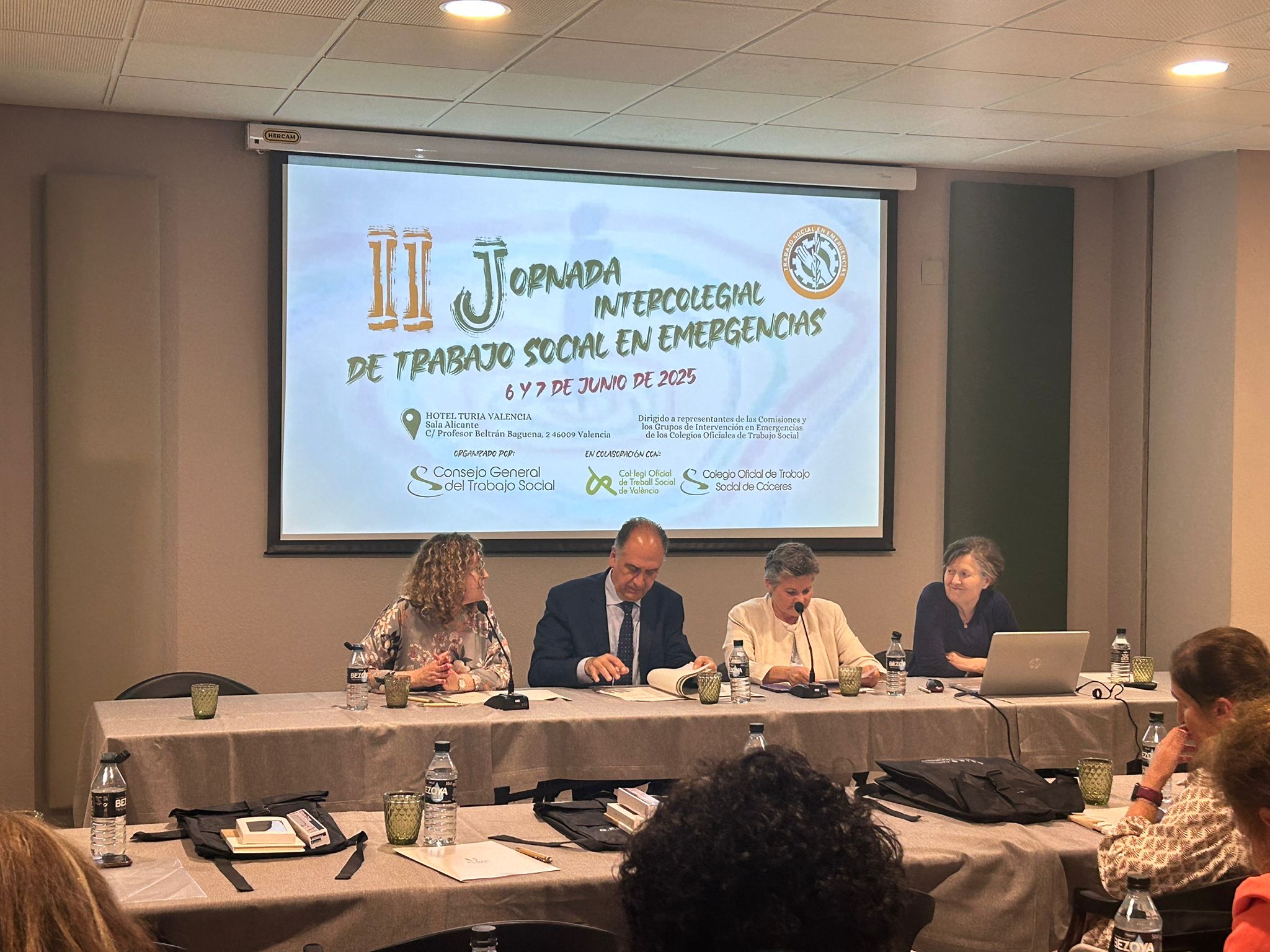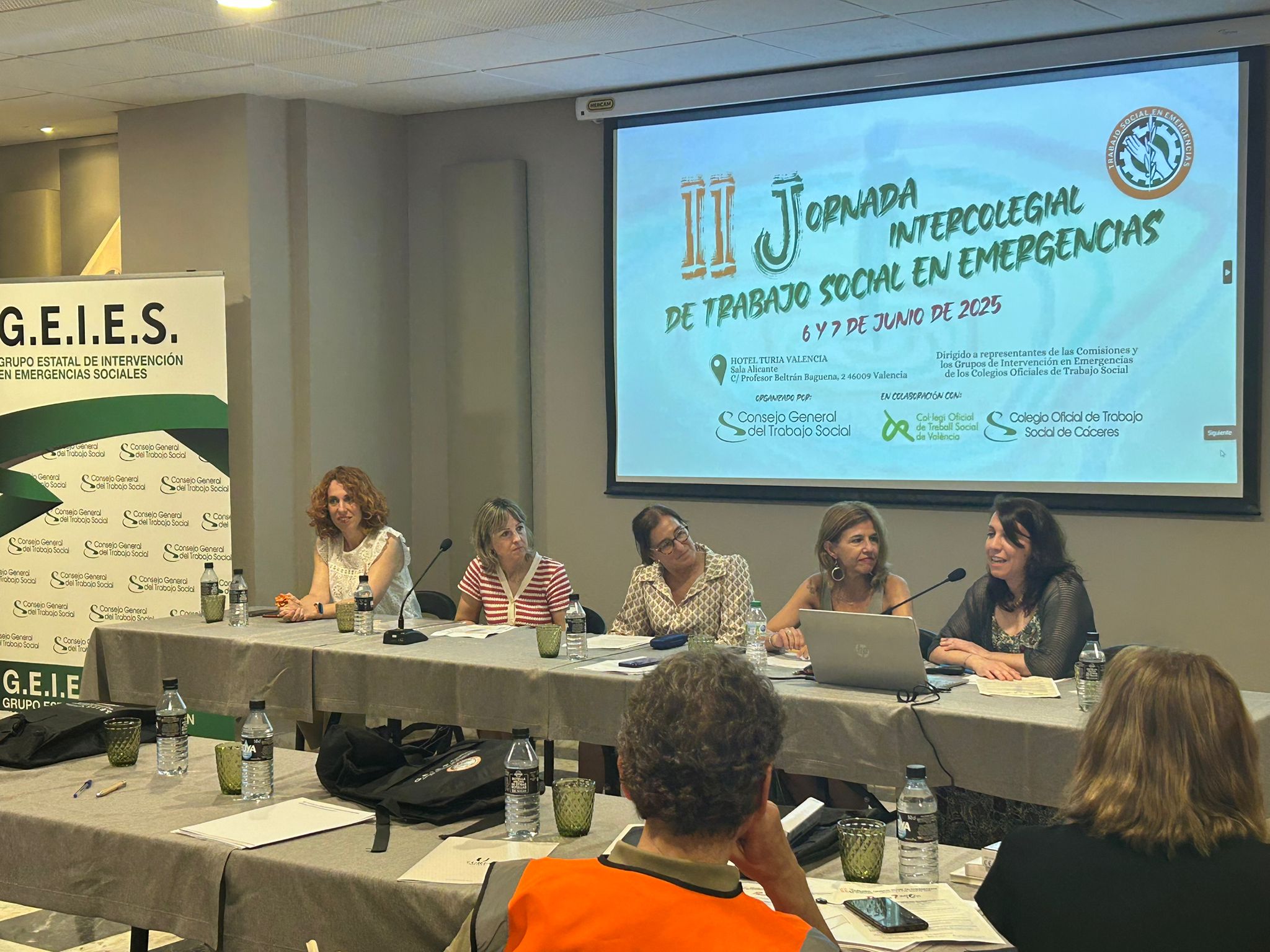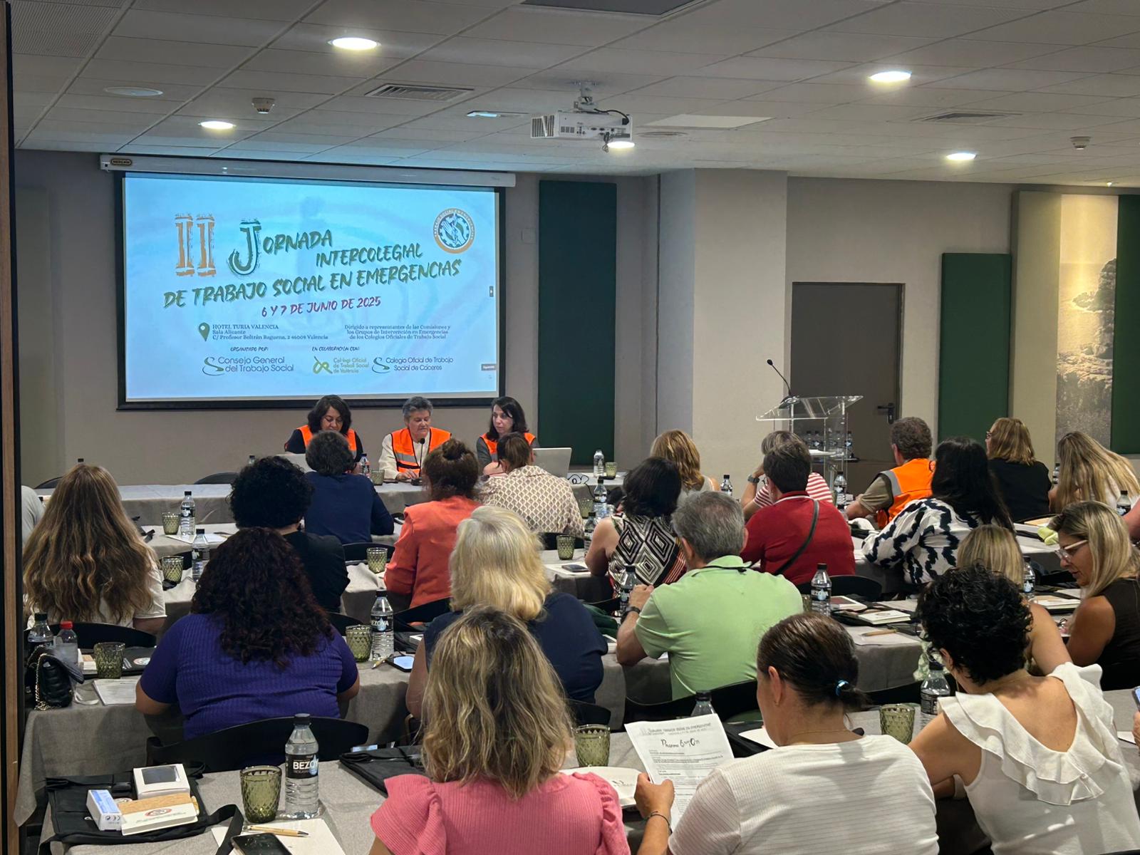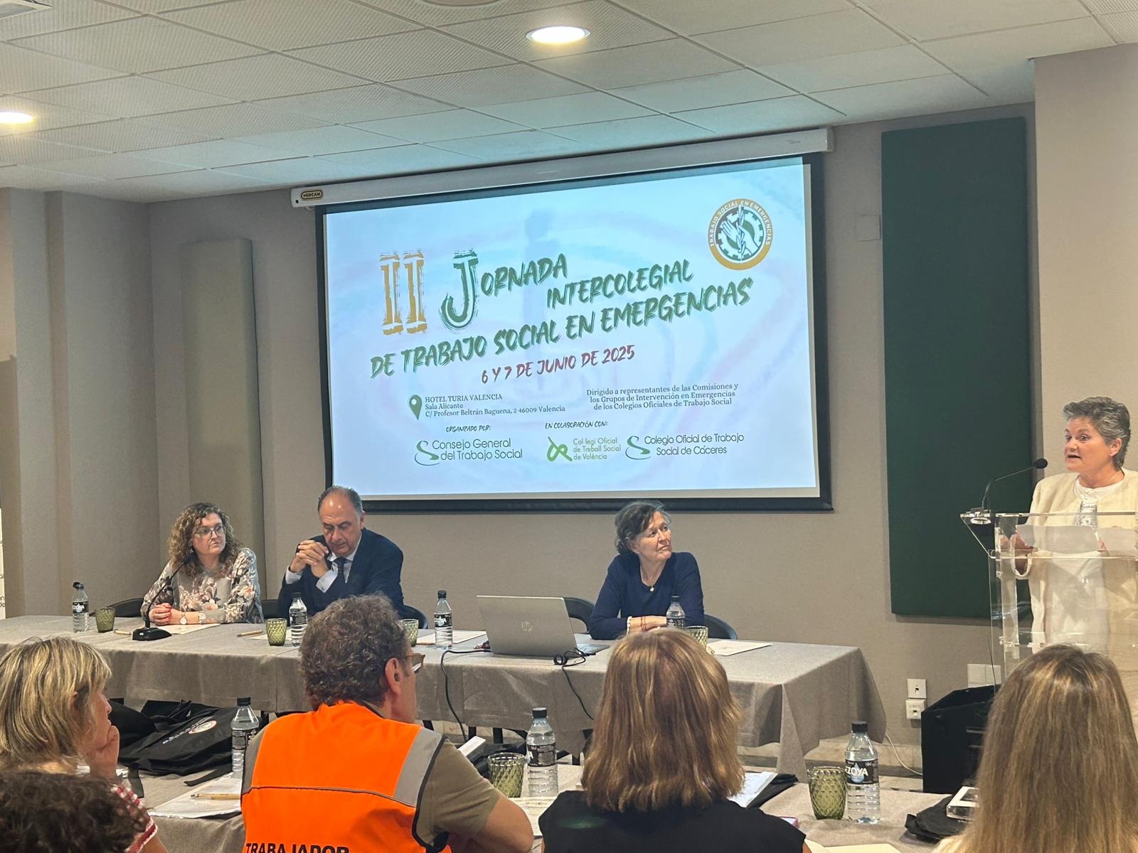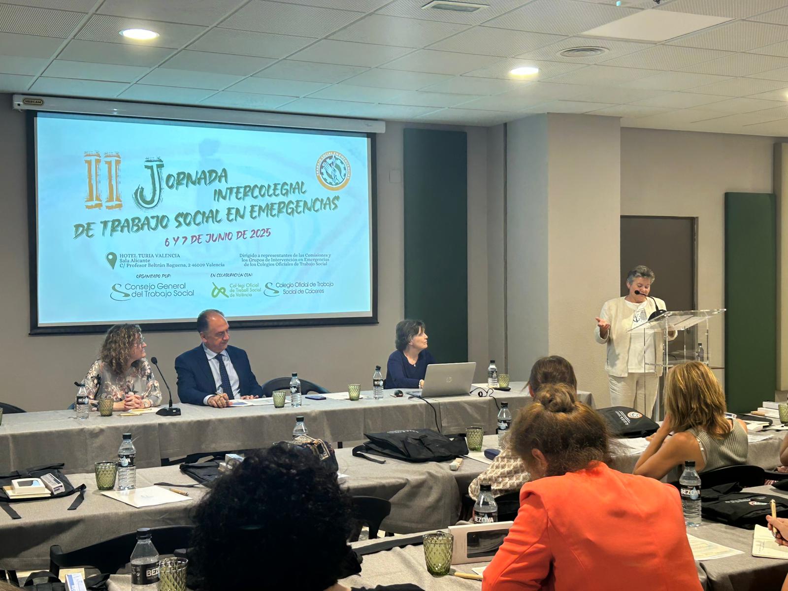 Valencia acogió el pasado 6 y 7 de junio la II Jornada Intercolegial de Trabajo Social en Emergencias, en colaboración con los Colegios Oficiales de Trabajo Social de Valencia y de Cáceres, siendo un espacio de aprendizaje, diálogo y reflexión entre los/as representantes de las Comisiones y los Grupos de Trabajadores/as Sociales en Intervención en Emergencias de los Colegios Oficiales de Trabajo Social y el Grupo Estatal de Intervención en Emergencias Sociales del Consejo General del Trabajo Social, y compartir experiencias, como las vividas por los diferentes efectivos ante la catástrofe provocada por la DANA en varias comunidades autónomas. Las jornadas están dirigidas a las comisiones y los grupos de emergencias de los Colegios.