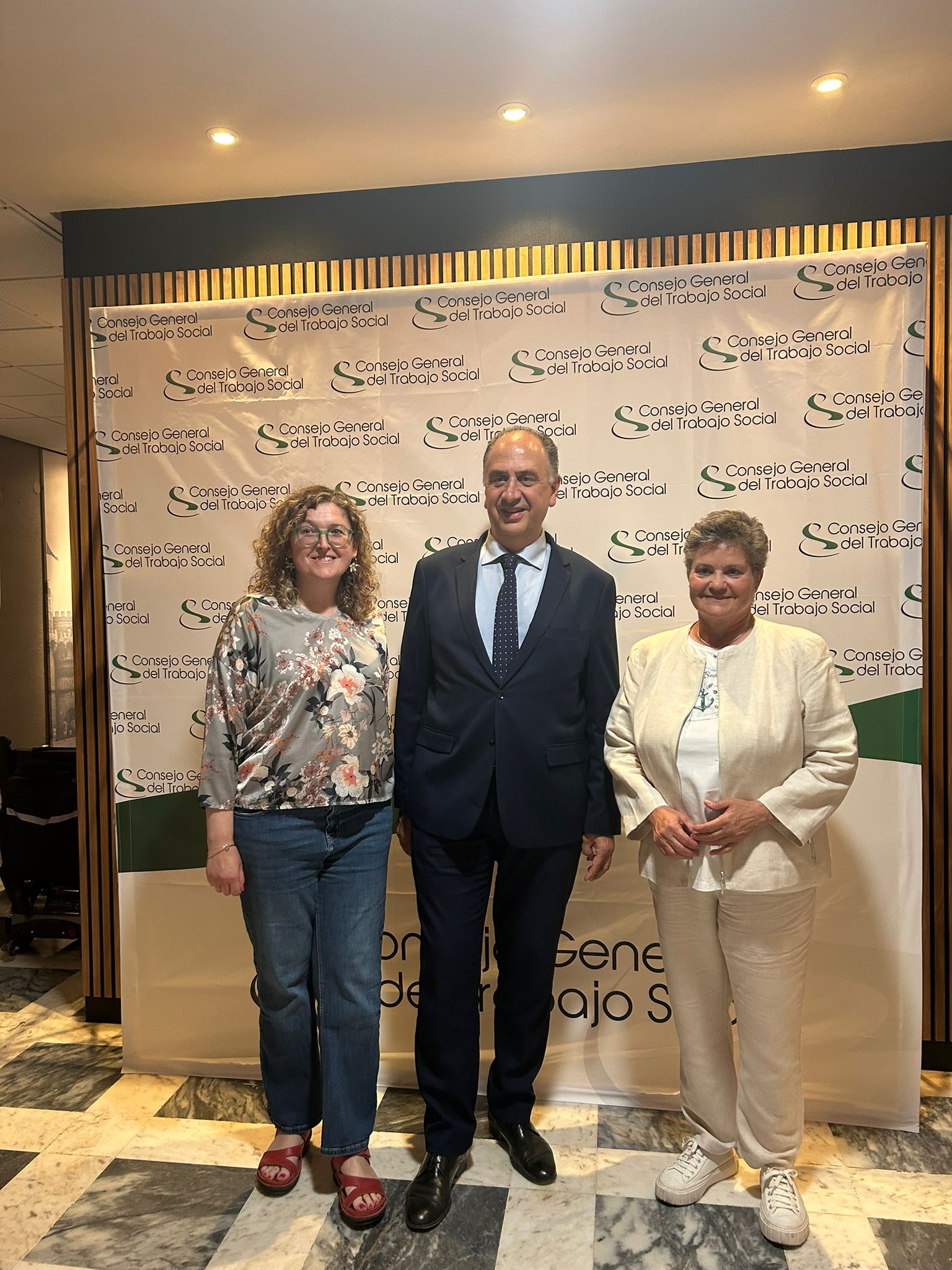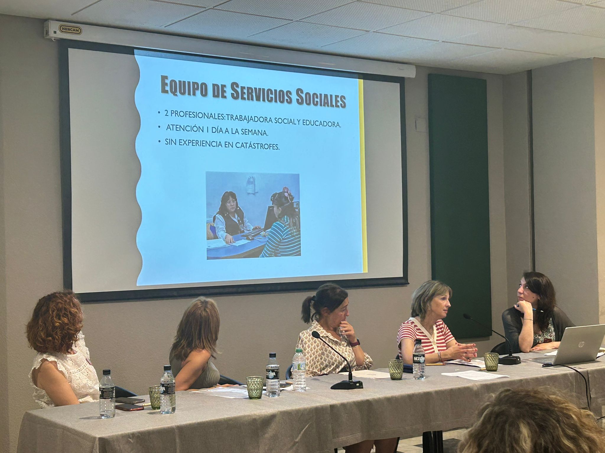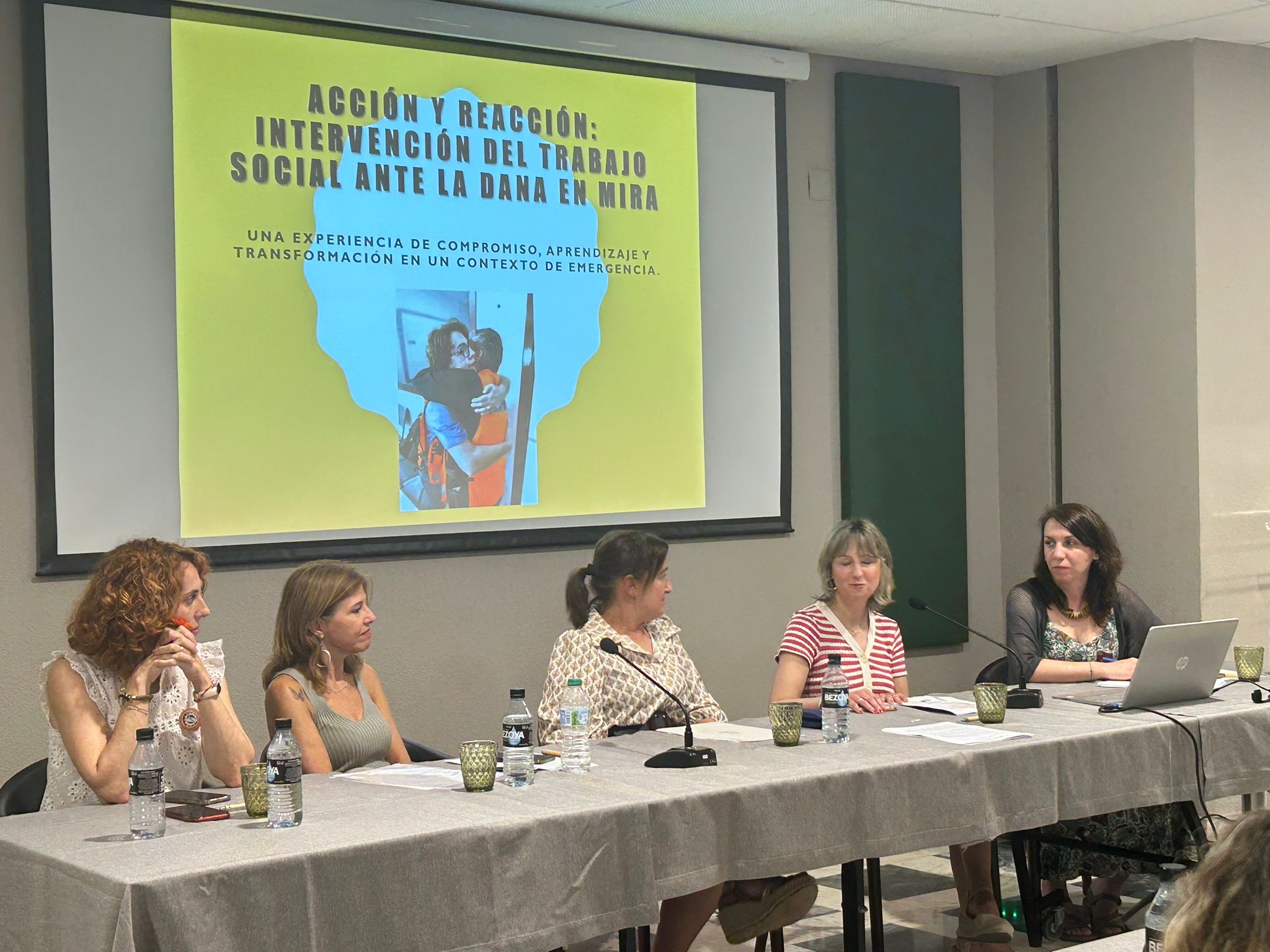 En la inauguración de la jornada acompañaron a Emi Vicente, Juan Carlos Valderrama, conseller de Emergencias e Interior de la Generalitat Valenciana; Francisca Herrero, presidenta del Col·legi de Treball Social de València y Ana Marta Fernández, vicepresidenta del Colegio Oficial de Trabajo Social de Cáceres.