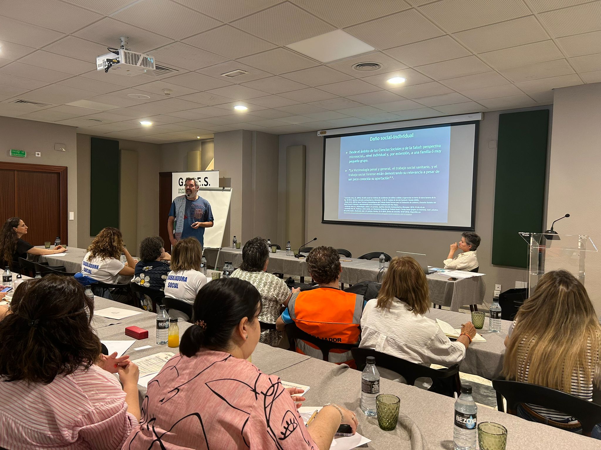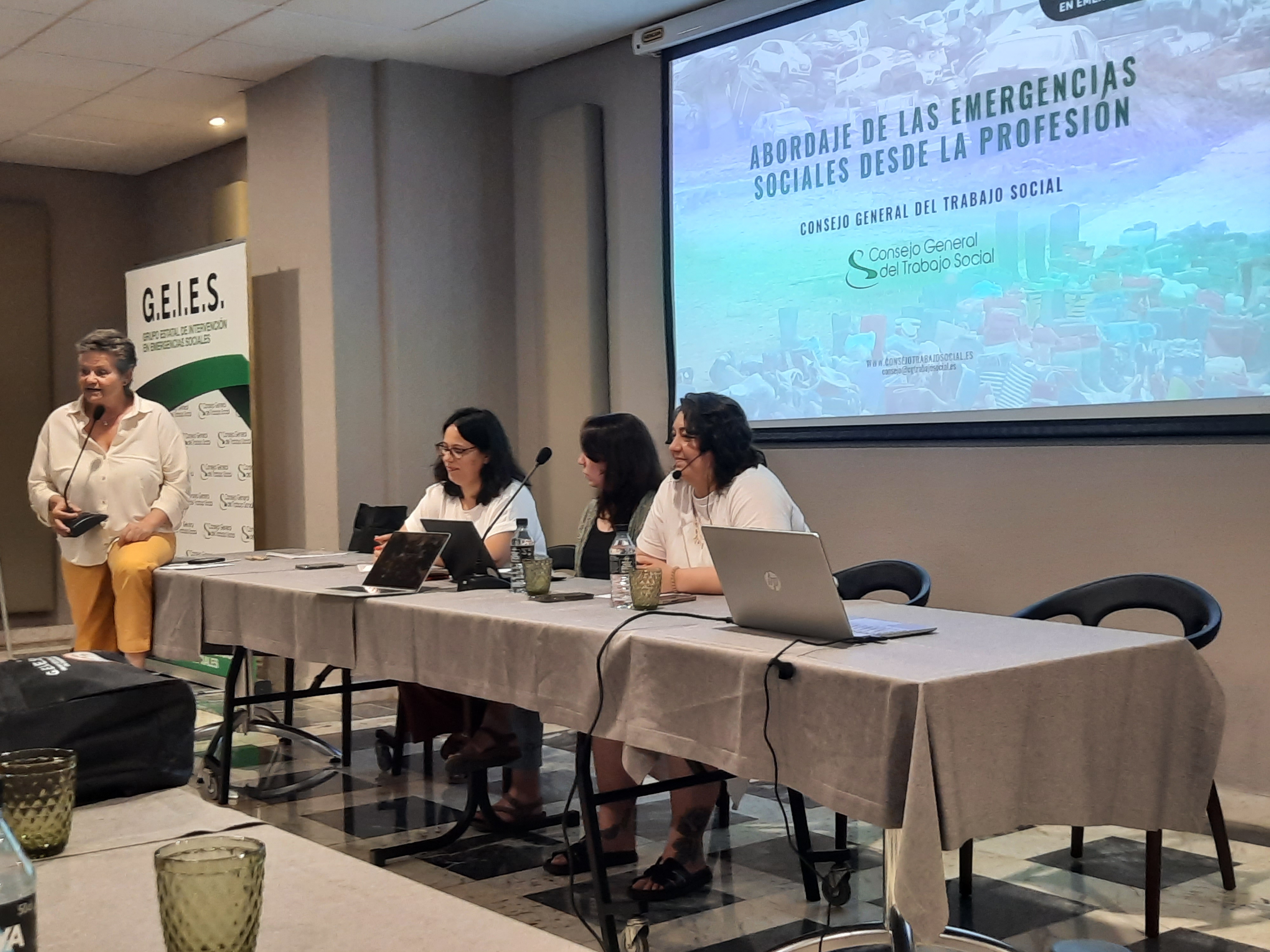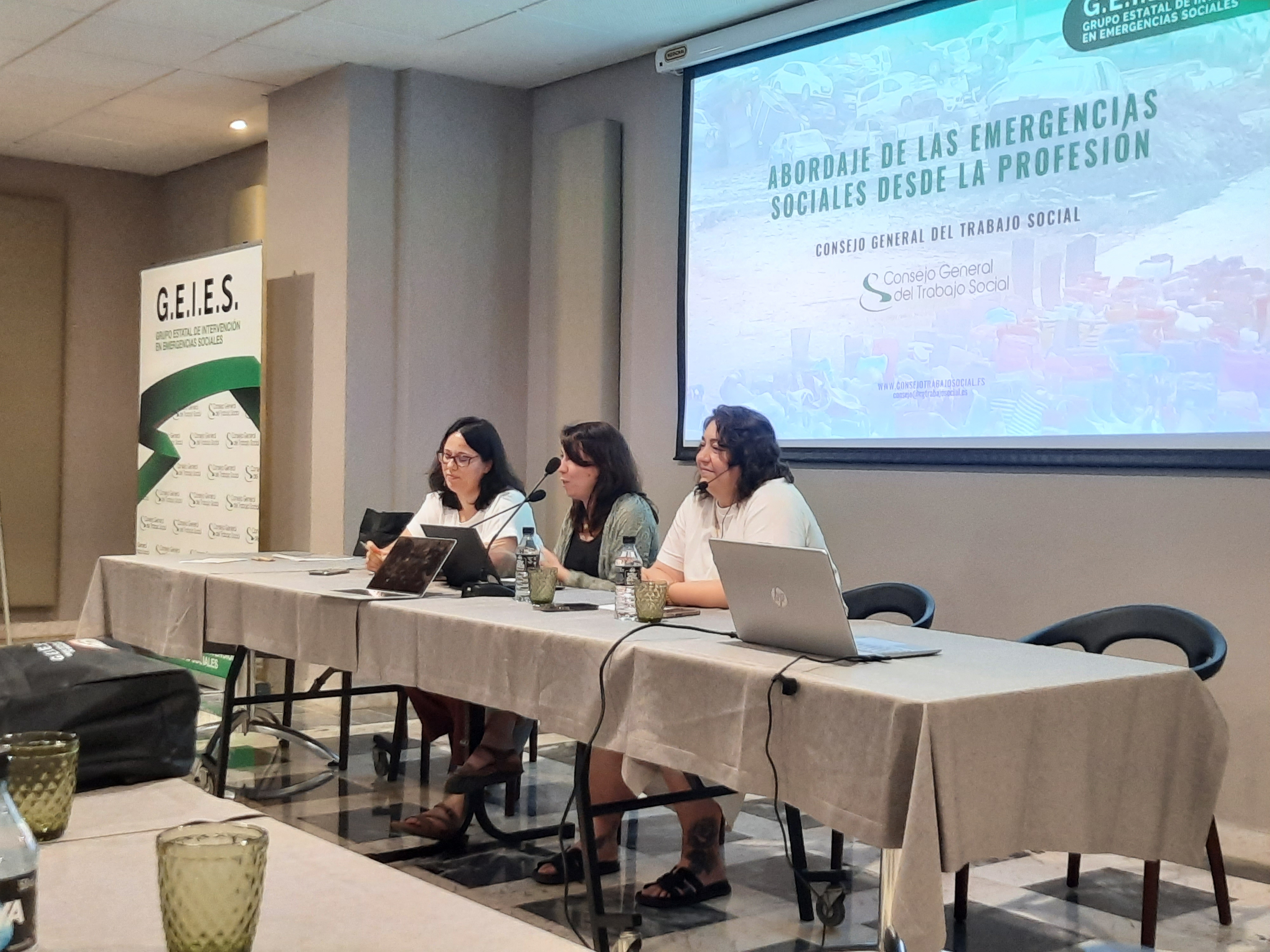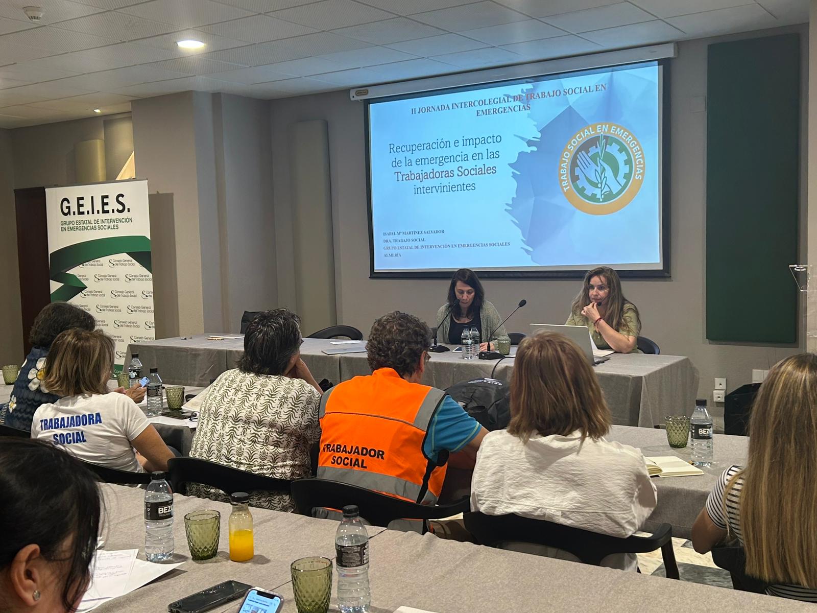 Emi Vicente expuso la necesidad de retomar las Jornadas Intercolegiales de Trabajo Social en Emergencias, ante las continuas grandes emergencias y catástrofes que han tenido que hacer frente desde los Colegios Profesionales y en concreto desde el Consejo General del Trabajo Social. Las jornadas han contado con la presencia de representantes del GEIES, que han transmitido sus conocimientos y experiencias en la creación del grupo, las gestiones organizativas internas-externas, la metodología de intervención en contextos de emergencia a los/as trabajadores/as sociales, las herramientas útiles que posibiliten una óptima intervención psicosocial, el acompañamiento activo a las víctimas y las familias y el cuidado de las profesionales intervinientes.