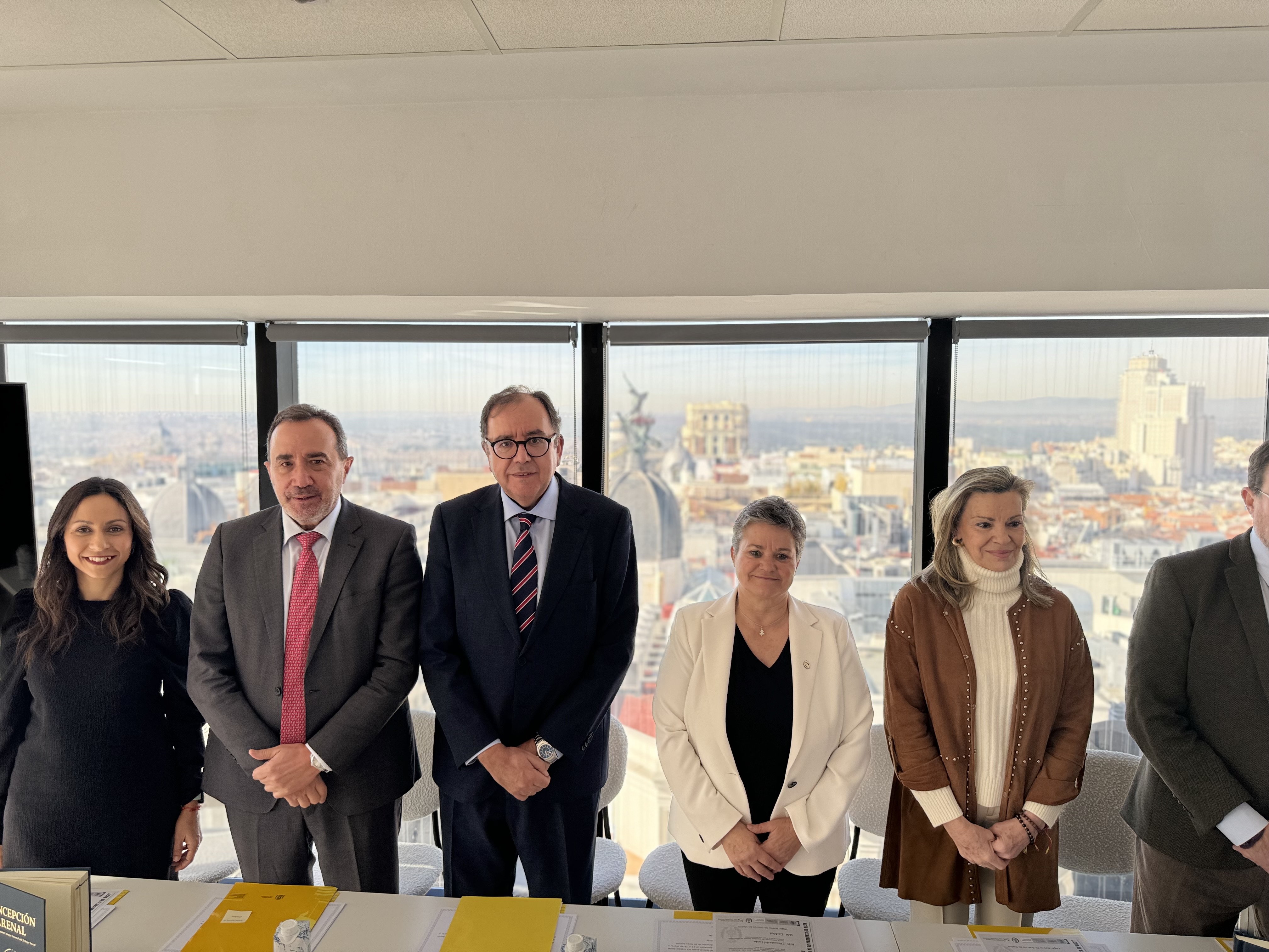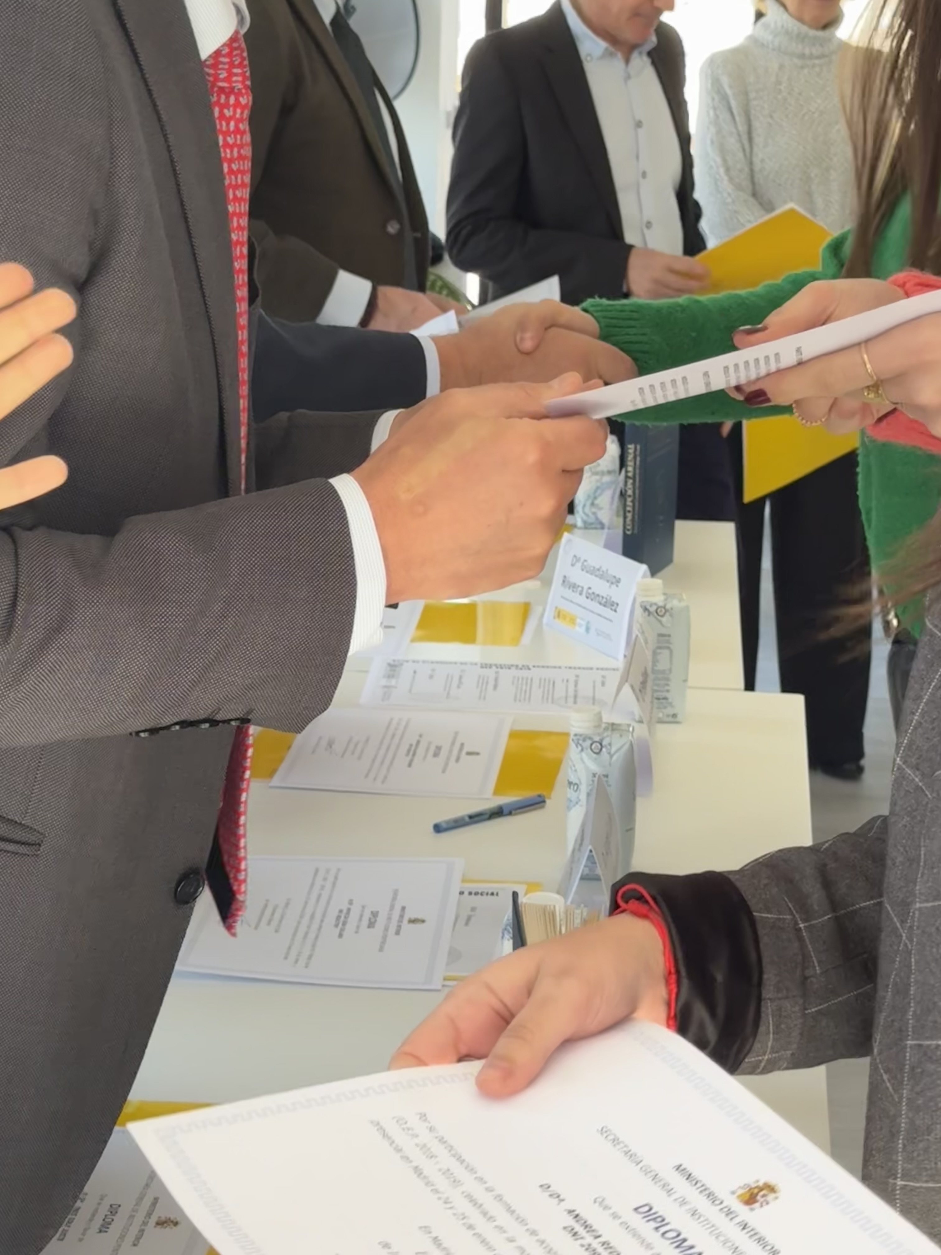 En la entrega de diplomas, participaron, D. Ángel Luis Ortiz González, Dª Emiliana Vicente, D. Miguel Ángel Vicente Cuenca, Director General de Ejecución Penal y Reinserción Social, Dª Guadalupe Rivera González, Subdirectora General de Medio Abierto y Penas y Medidas Alternativas, D. Eugenio Arribas López, Subdirector General de Recursos Humanos y Dª Laura Monroy, Vocal Junta CGTS y Trabajadora Social de II.PP.