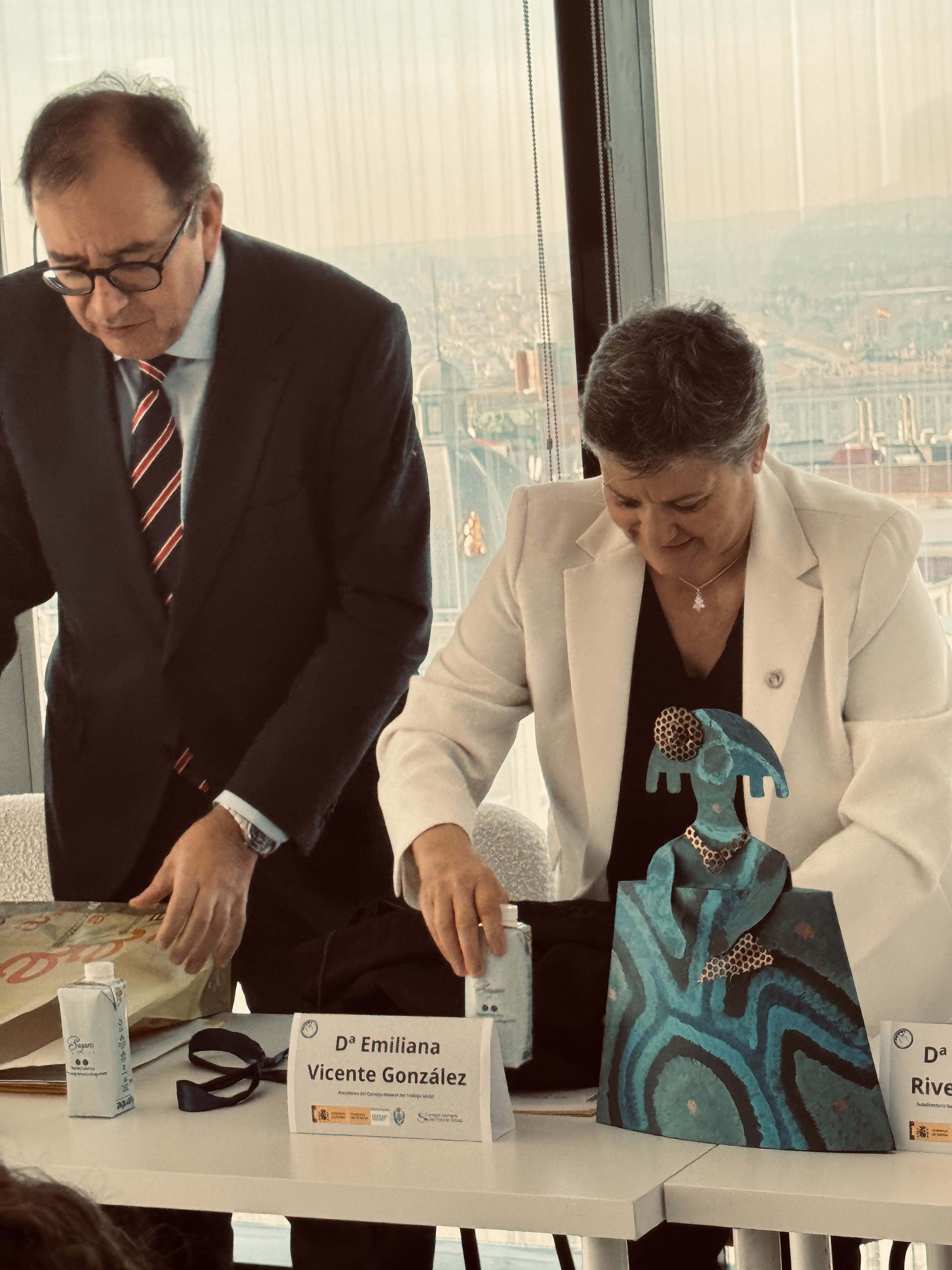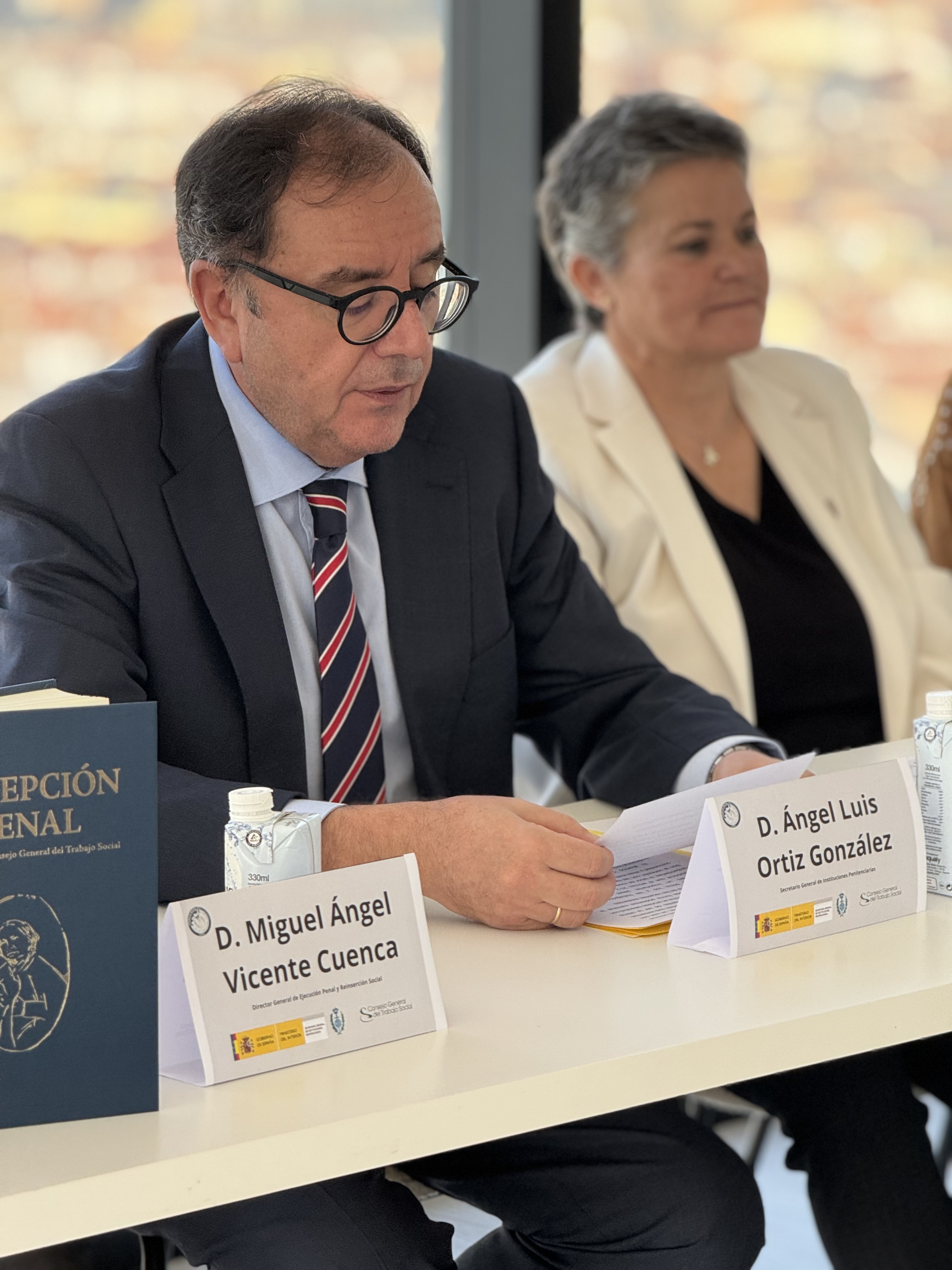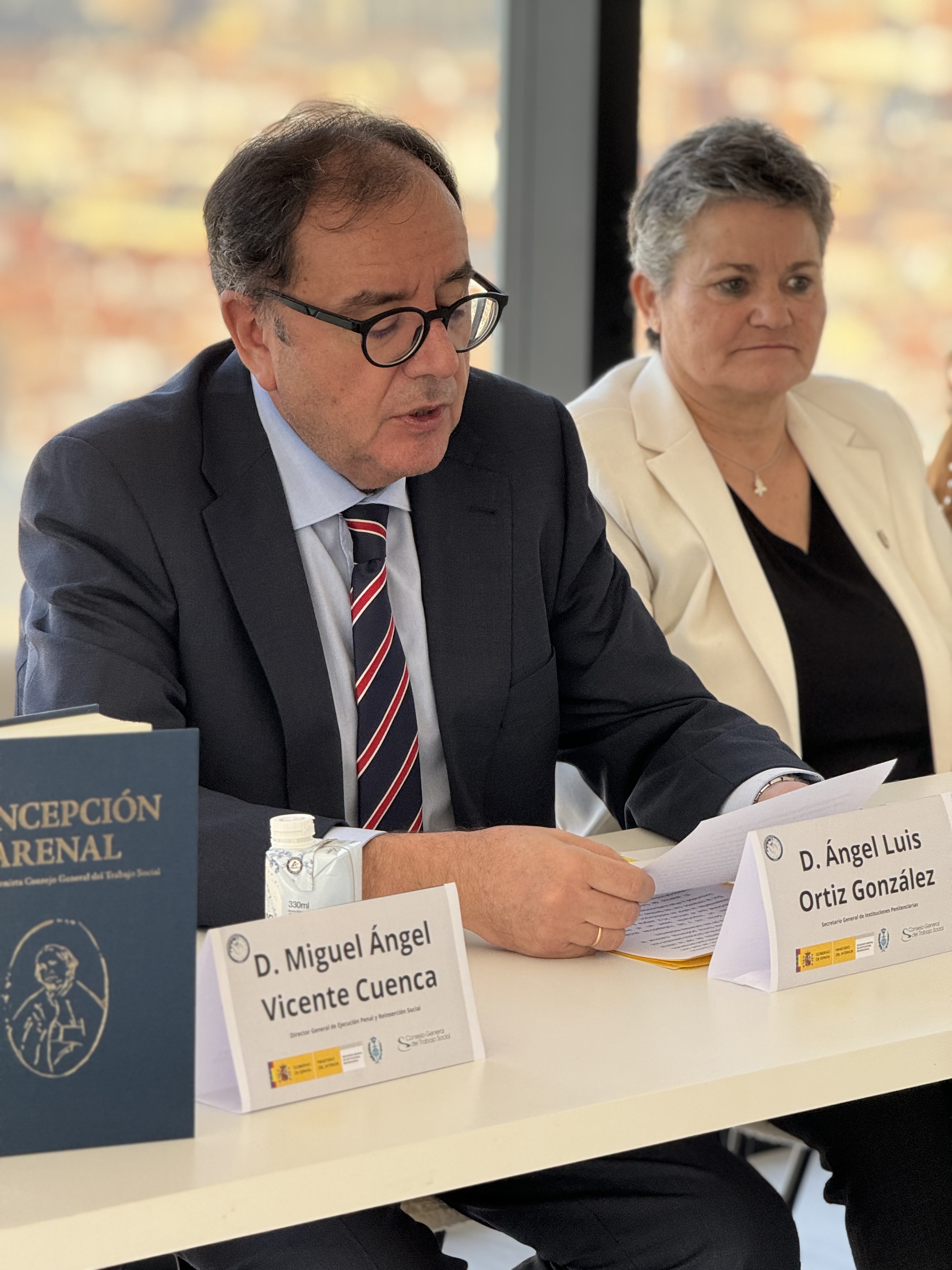 Un emotivo acto donde tanto D. Ángel Luis Ortiz González, Secretario General de Instituciones Penitenciarias como Dña. Emiliana Vicente, presidenta del Consejo General del Trabajo Social, dejaron constancia de la estrecha colaboración entre la Secretaría y el Consejo General, para velar por los derechos de las/os comapañeras/os del ámbito penitenciario.