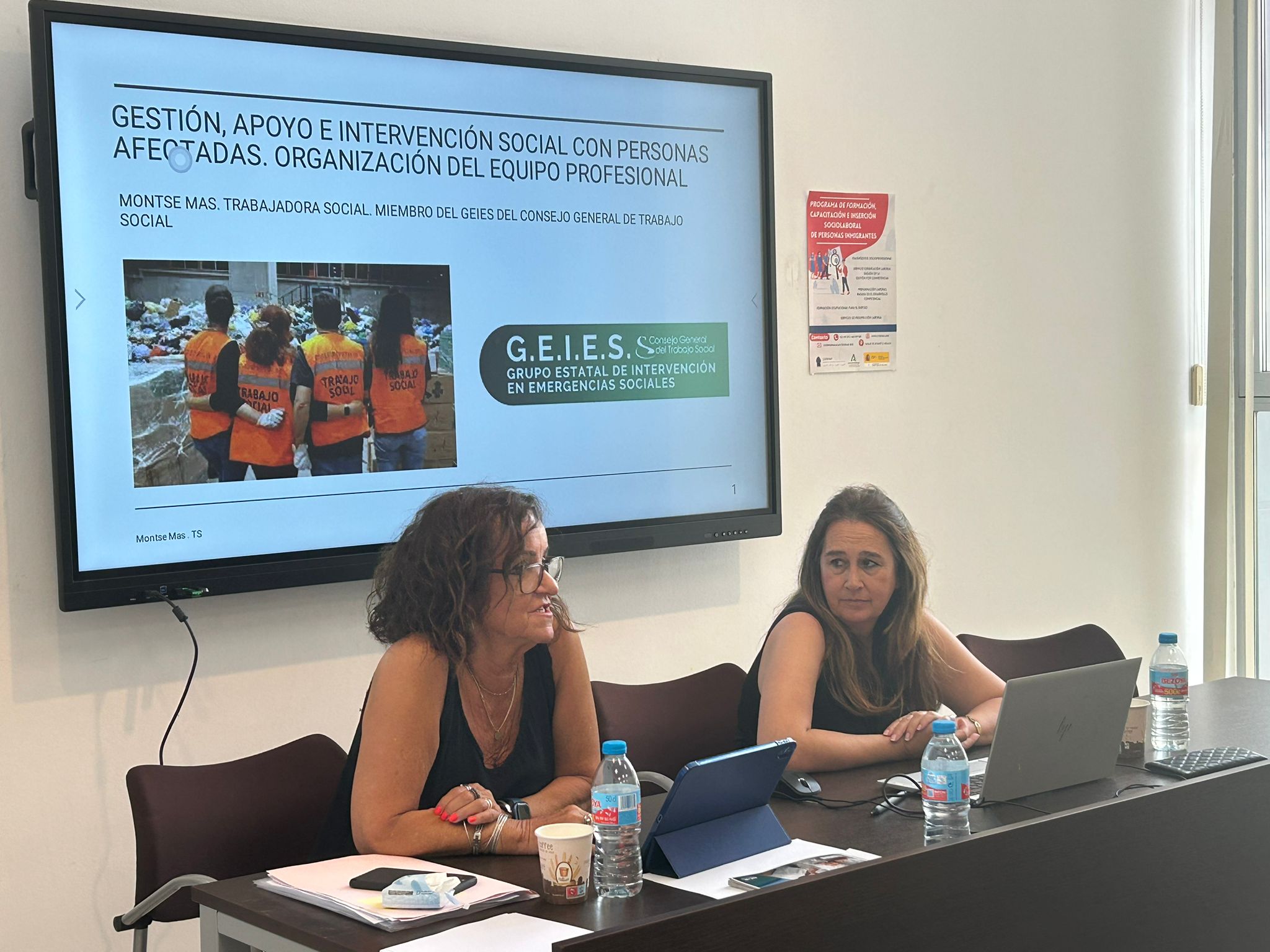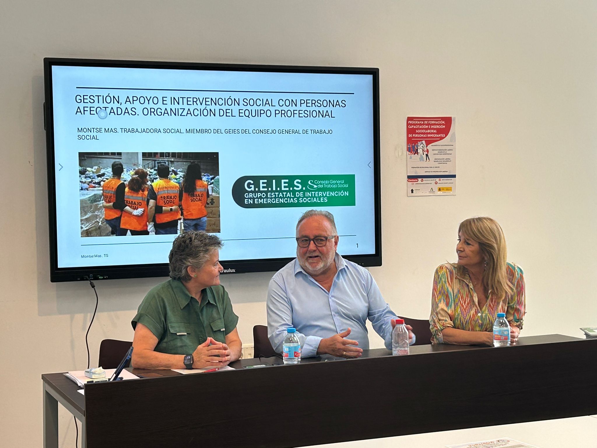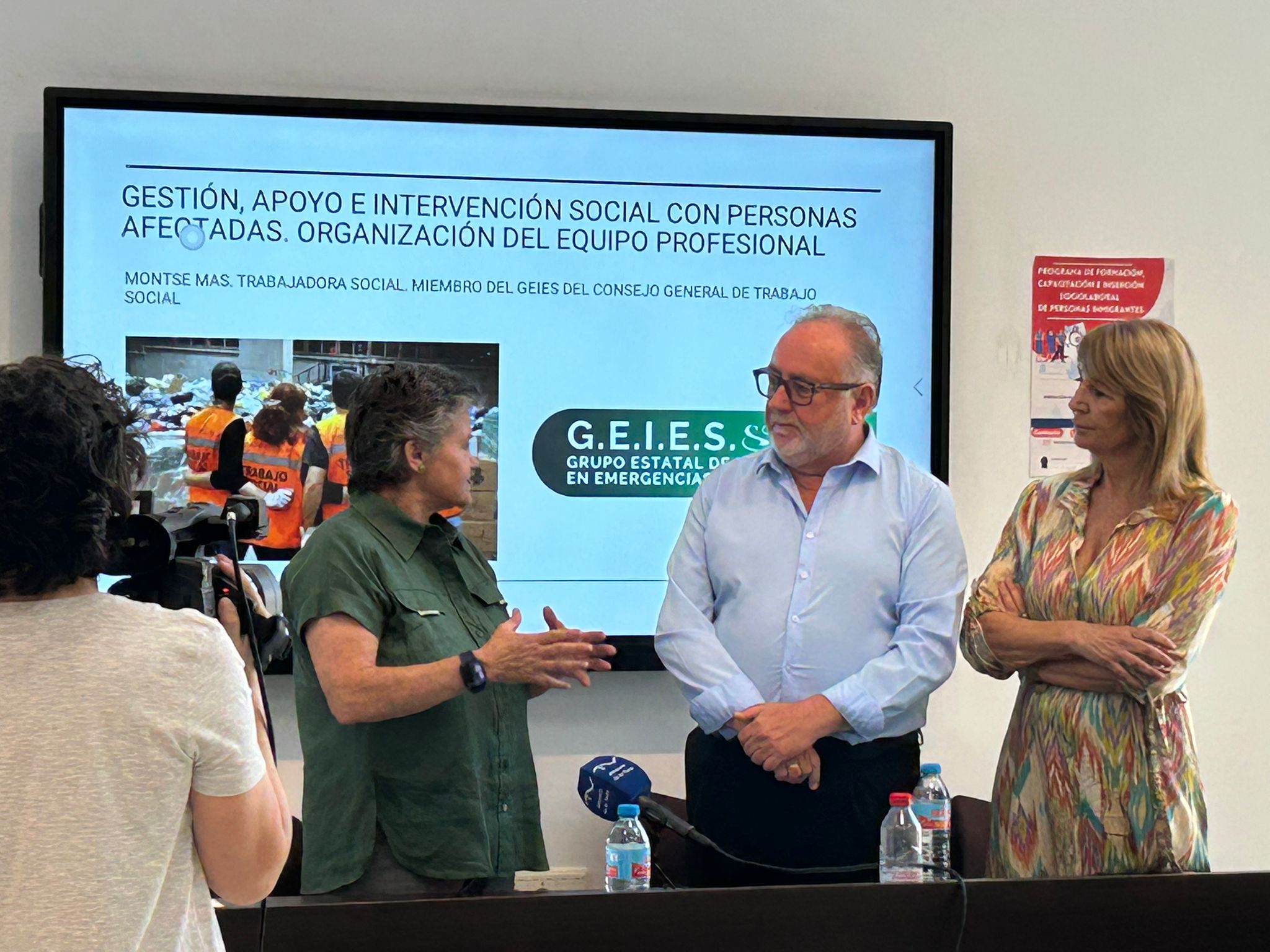 La primera jornada ha contado con la presencia de destacadas expertas del Comité de Expertos y Expertas del Grupo Estatal de Intervención en Emergencias Sociales (GEIES) del Consejo General, como Lourdes Belda y Montse Mas, quienes han abordado cuestiones clave como el perfil profesional en emergencias, la gestión de equipos y el apoyo psicosocial a personas afectadas.
