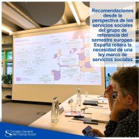 El Consejo General, como miembro coordinador del Semestre Europeo en España, ha participado en todo el proceso y ha traslado la realidad de España reiterando la necesidad de aprobar una Ley marco de Servicios Sociales.