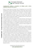 Desde el Consejo General del Trabajo Social, en representación de más de 40.000 trabajadores/as sociales de toda España, queremos mostrar nuestro absoluto rechazo hacia la violencia machista. En el día de hoy se ha producido un triple crimen machista en la localidad gallega de Valga. Un varón ha matado a su exmujer, exsuegra y excuñada delante de los hijos menores de 4 y 7 años. Nos sumamos a las muestras de cariño y solidaridad hacia la familia y amigos/as de las últimas víctimas, apoyo que también hacemos extensible para familiares y amistades de todas las víctimas que ha dejado la violencia machista en lo que va de año.