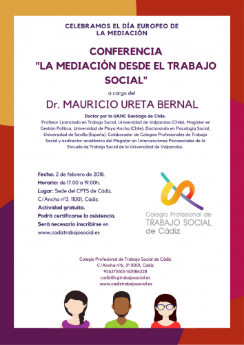 CONFERENCIA del Dr. Mauricio Ureta Bernal "La Mediación desde el Trabajo Social" Actividad gratuita y certificable. Necesario confirmar asistencia.