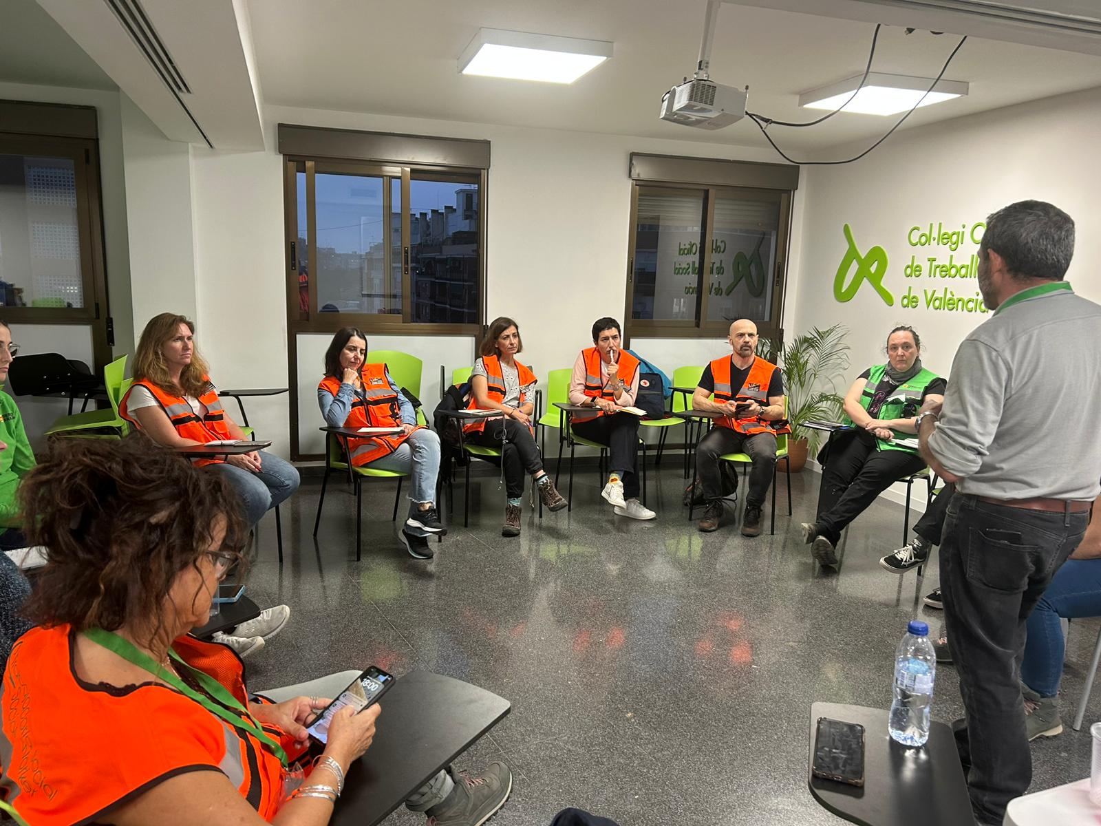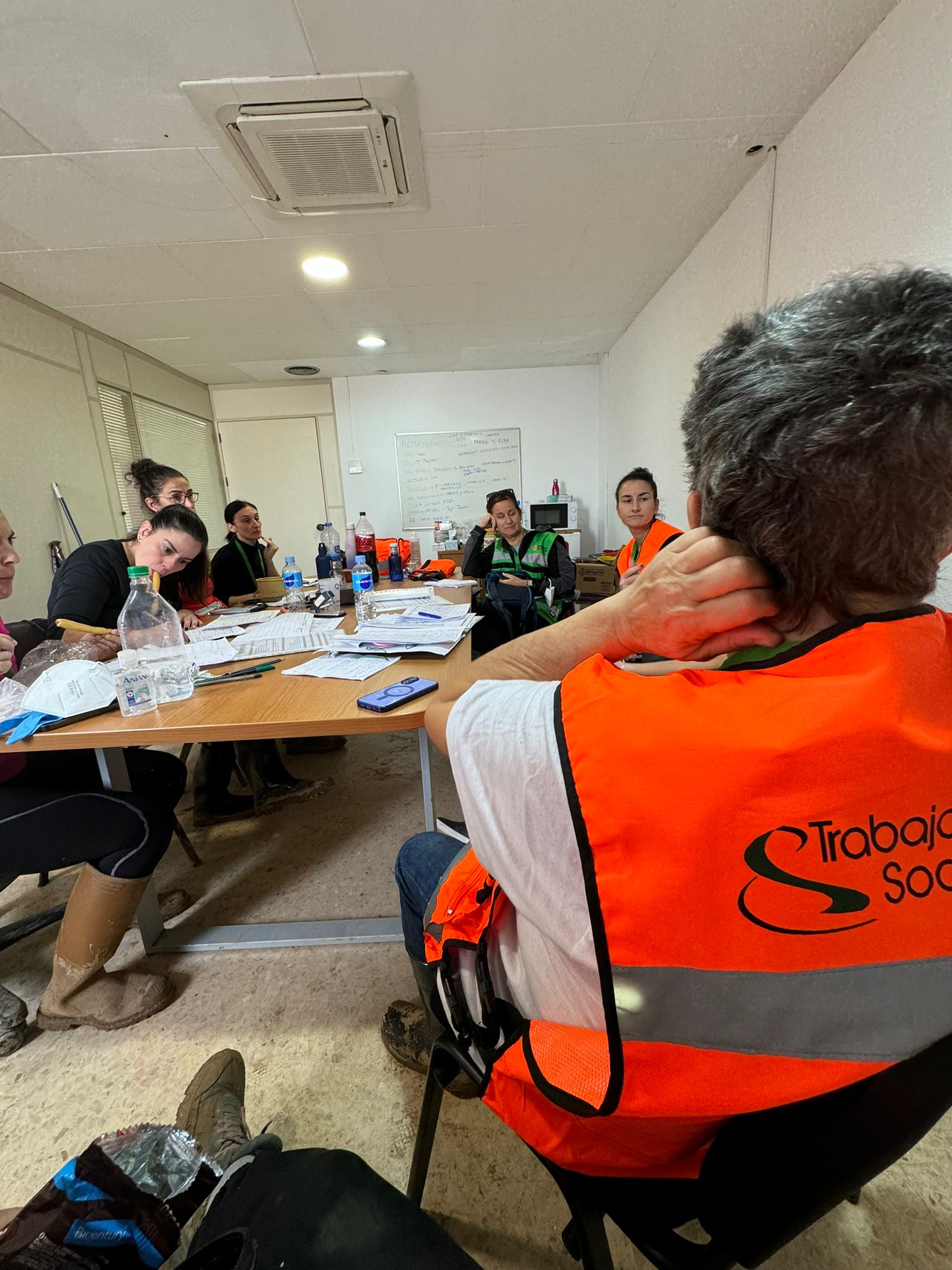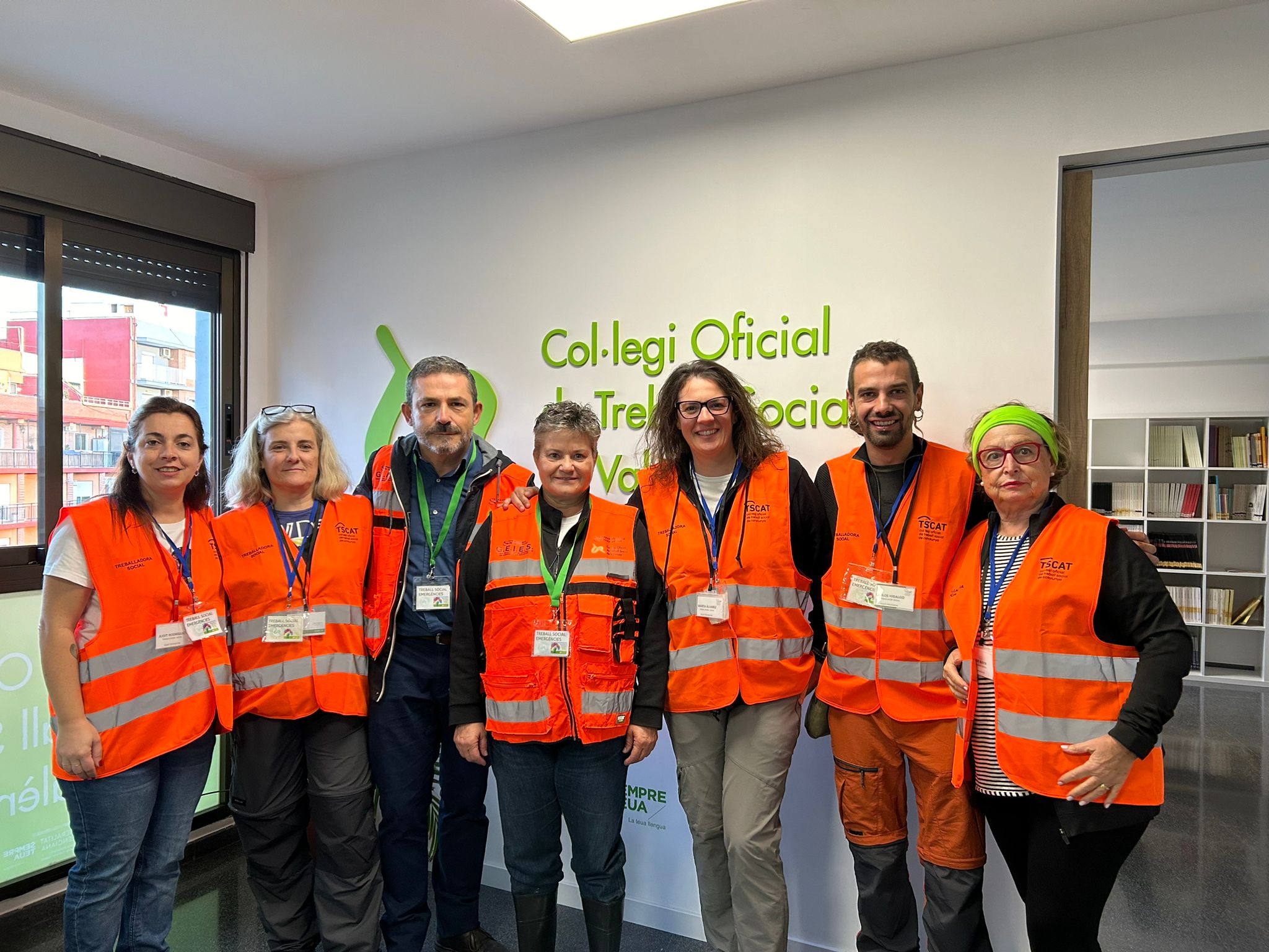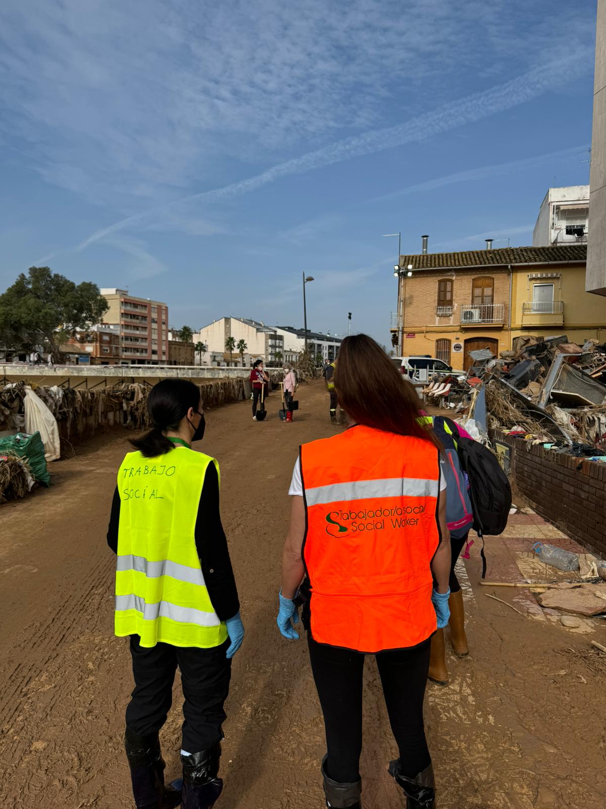 Ambos equipos mantuvieron una reunión con el Colegio Oficial de Trabajo Social de Valencia, donde se dio traslado de la situación, las acciones llevadas a cabo por el equipo del Colegio, las necesidades detectadas por las trabajadoras sociales de las zonas afectadas y se distribuyen las poblaciones de actuación. Cada equipo fue asignado a diferentes localizaciones afectadas acompañando a los equipos de los servicios sociales municipales.