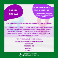 El día 4 de septiembre se celebra el Día Mundial de la Salud Sexual y Reproductiva, una iniciativa de la Asociación Mundial Para la Salud Sexual que se lleva a cabo desde el año 2010, y que tiene la finalidad de concienciar a la población sobre los derechos sexuales, la diversidad, la salud sexual y reproductiva de manera placentera y sin riesgos y la no discriminación.