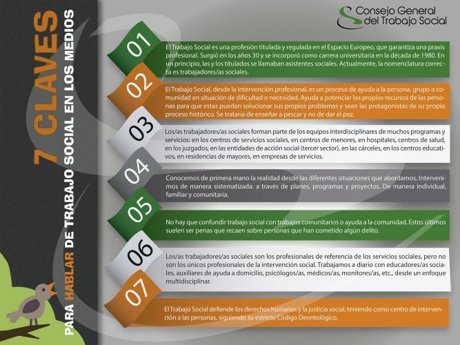 Con motivo de la celebración del Día Mundial del Trabajo Social, el Consejo General del Trabajo Social ha elaborado una guía para medios de comunicación con las 7 claves que definen el trabajo social. La guía recoge errores comunes, como confundir los trabajos a la comunidad con esta profesión.
