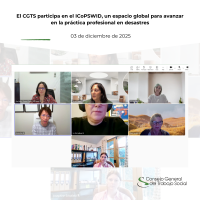 El Consejo General del Trabajo Social (CGTS) ha participado hoy en la primera sesión de la International Community of Practice on Social Work in Disasters (ICoPSWID), un nuevo espacio internacional de intercambio profesional dedicado a fortalecer el papel del trabajo social en contextos de emergencia y desastre.
