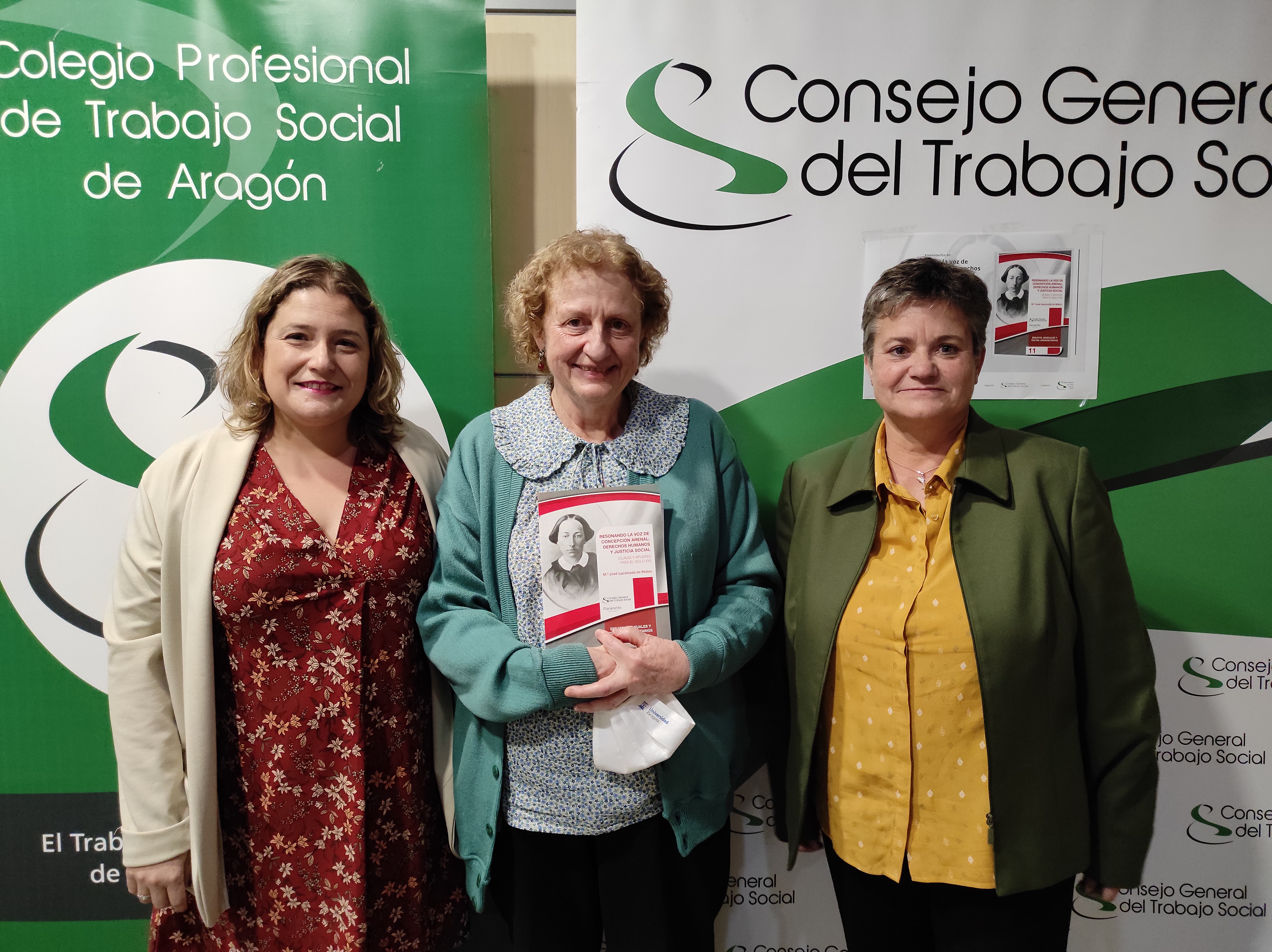 Se ha presentado la obra de María José Lacalzada en el Centro Joaquín Roncal, en Zaragoza. Un acto organizado por el Consejo General en colaboración con el Colegio Oficial de Trabajo Social de Aragón en el que han participado Emiliana Vicente, presidenta del CGTS, y Sandra Arauz, secretaria del COTS de Aragón.