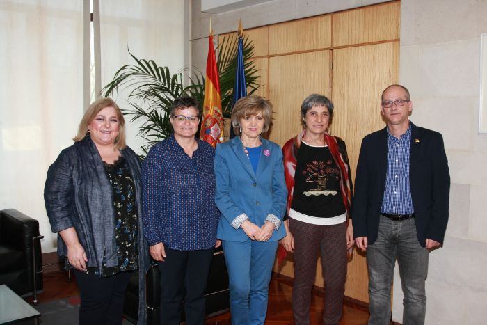 La ministra de Sanidad, Consumo y Bienestar Social, María Luisa Carcedo, recibe a la presidenta del CGTS, Emiliana Vicente, y los miembros de la Junta de Gobierno Rafael Arredondo y Raquel Millán