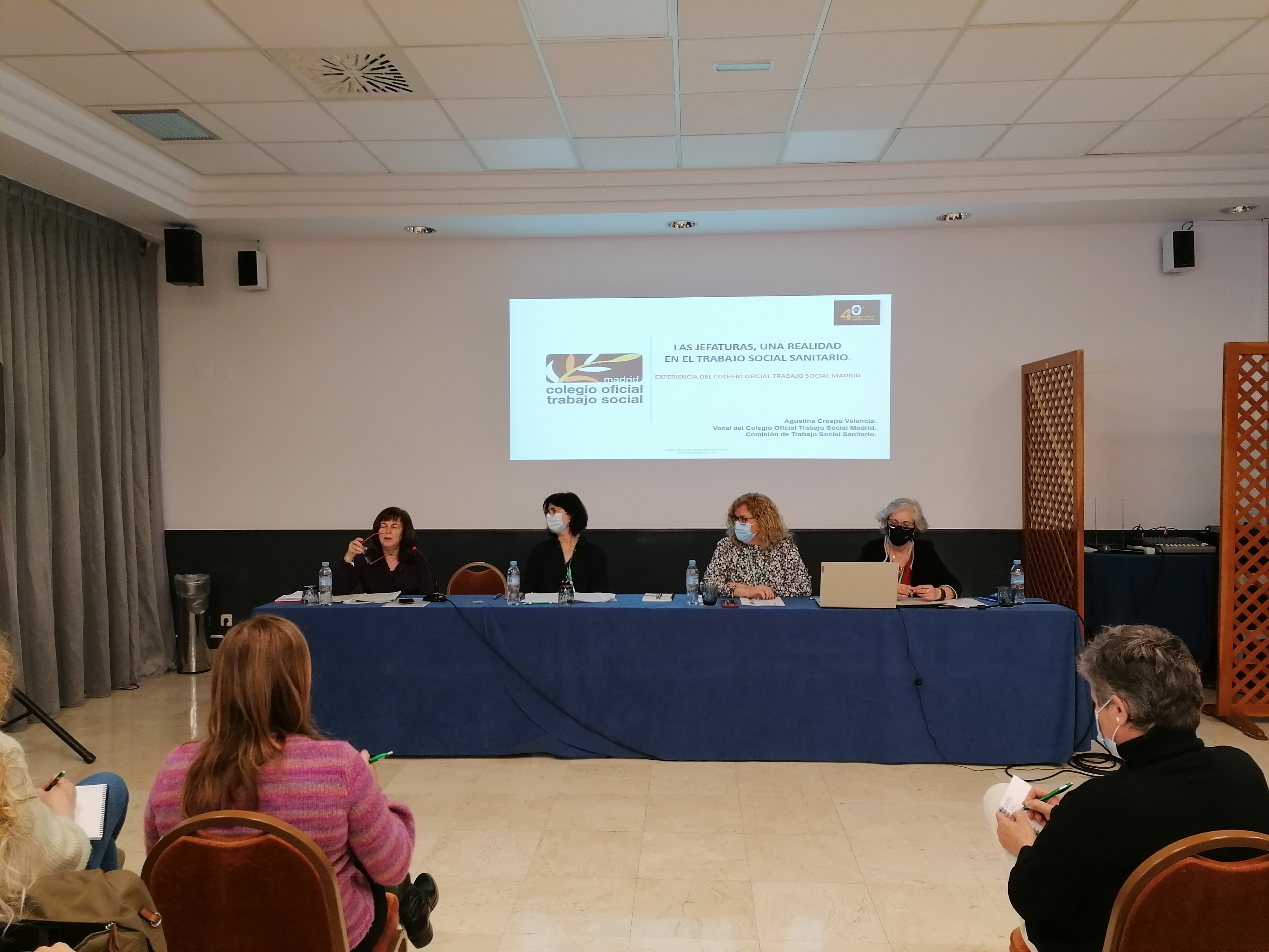 En el segundo espacio bajo el título “Las jefaturas, una realidad en el Trabajo Social Sanitario” y coordinado por María Jesús Ballestín, jefa de Servicio del Hospital Clínico Universitario de Zaragoza, se ha contado con la participación de Luz Campello, jefa de Servicio de Trabajo Social del Área Sanitaria A Coruña-Cee (Servicio Gallego de Salud); Agustina Crespo Valencia, referente de la Comisión de Trabajo Social Sanitario y vocal del Colegio Oficial de Trabajo Social de Madrid, y Laura Morro, referente de la Comisión de Salud y tesorera del Col·legi Oficial de Treball Social de Catalunya.