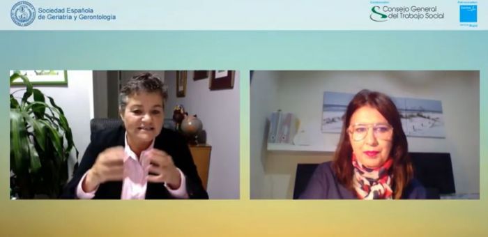 La Sociedad Española de Geriatría y Gerontología (SEGG) organiza el I Webinar para profesionales del Trabajo Social bajo el título “Claves para la atención integral de calidad de las personas mayores: la valoración geriátrica y la intervención social”. El Consejo General del Trabajo Social (CGTS) ha colaborado en este webinar y Emiliana Vicente, presidenta del Consejo, ha inaugurado la jornada interviniendo después de José Augusto García Navarro, presidente de la SEGG.
