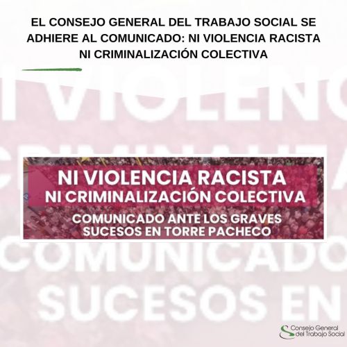 Desde el Consejo General del Trabajo Social nos adherimos al comunicado firmado por más de 850 asociaciones de todo el país: “Ni violencia racista ni criminalización colectiva”, sumándonos así al rechazo colectivo frente a los graves sucesos acontecidos en Torre Pacheco.