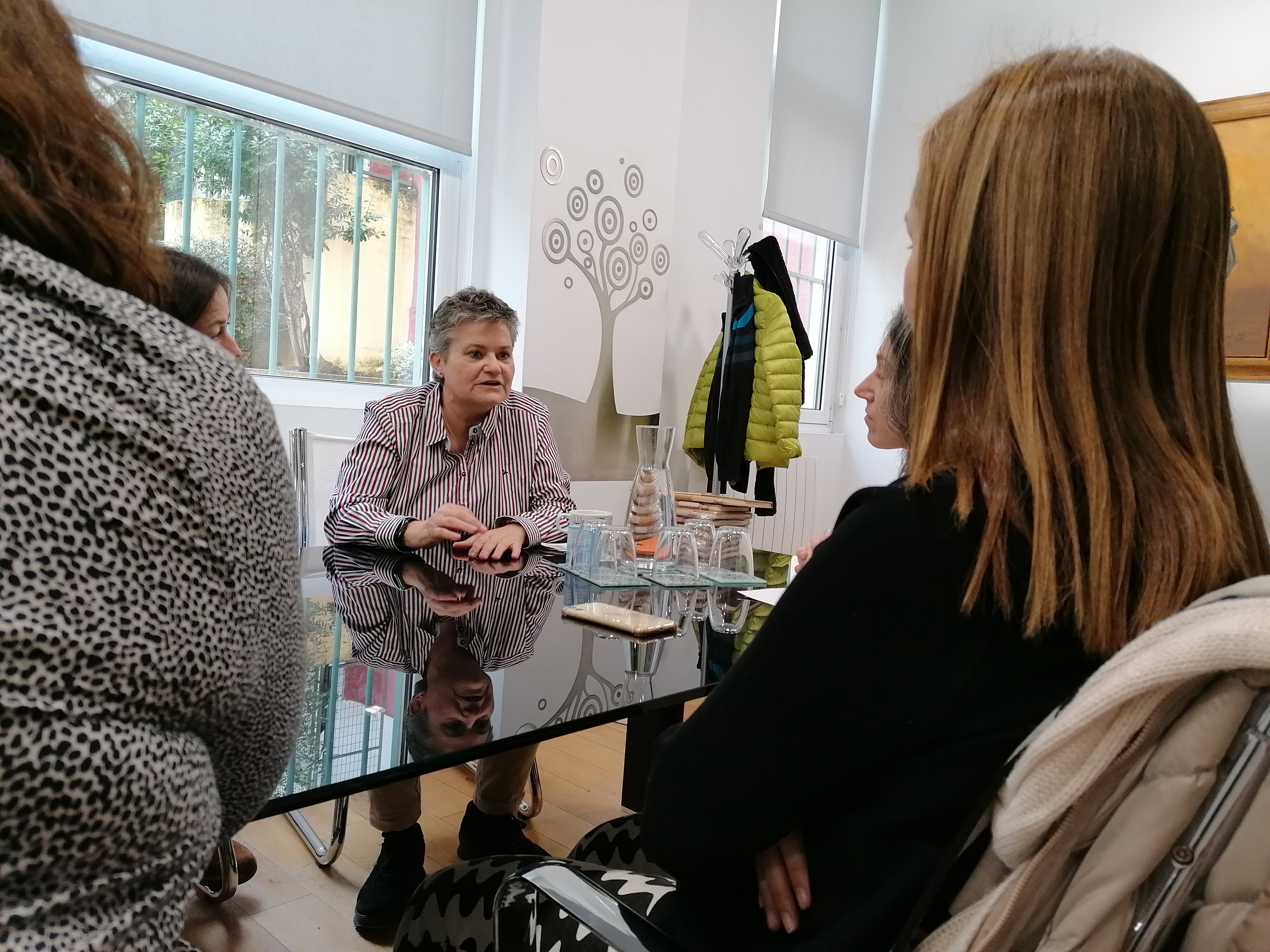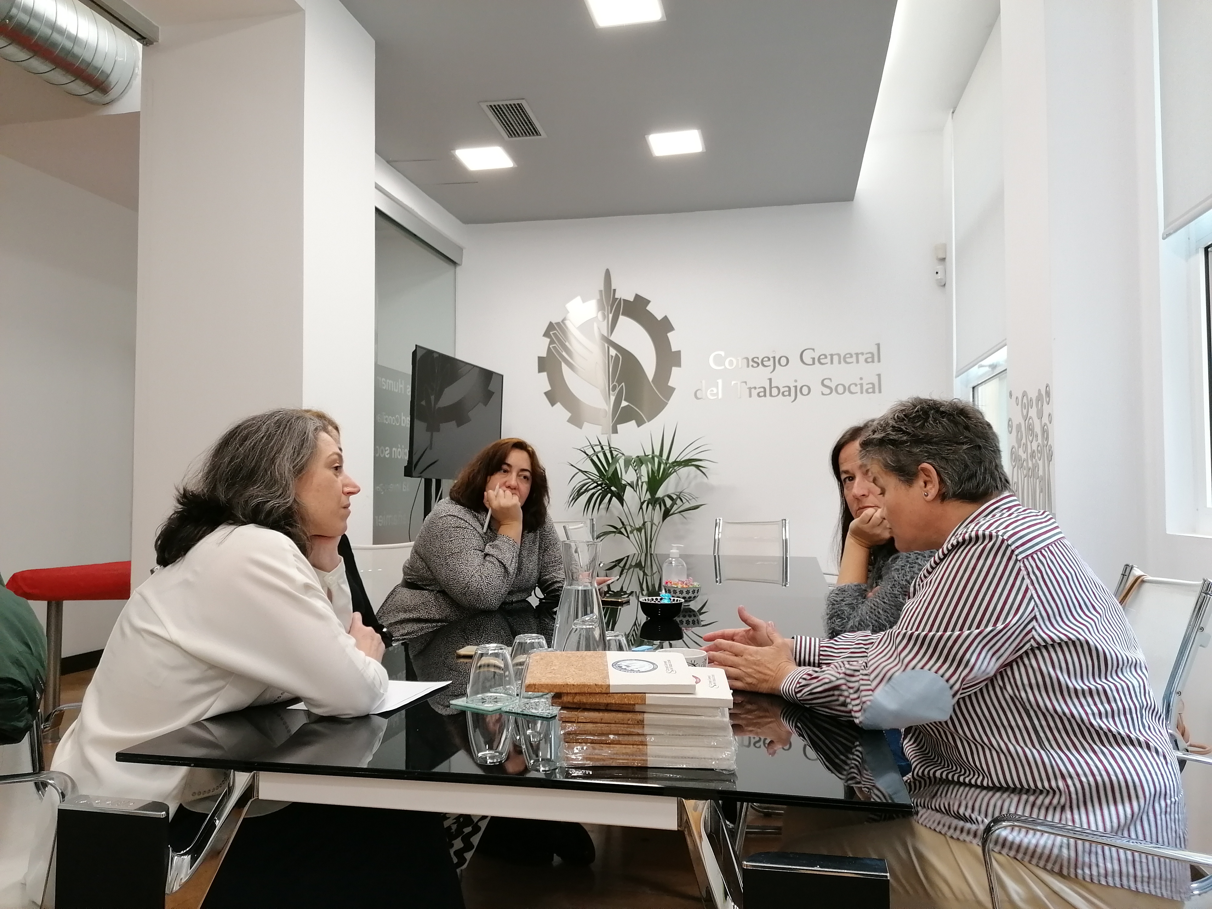 Rocío Contreras, presidenta del Colegio oficial, Catalina Pérez, Vicepresidenta de Relaciones Institucionales y la gerente Belén Bono han conocido las instalaciones del Consejo General y han mantenido una reunión con Emiliana Vicente González presidenta del Consejo General del Trabajo Social para intercambiar impresiones, crear sinergias y seguir trabajando juntas.