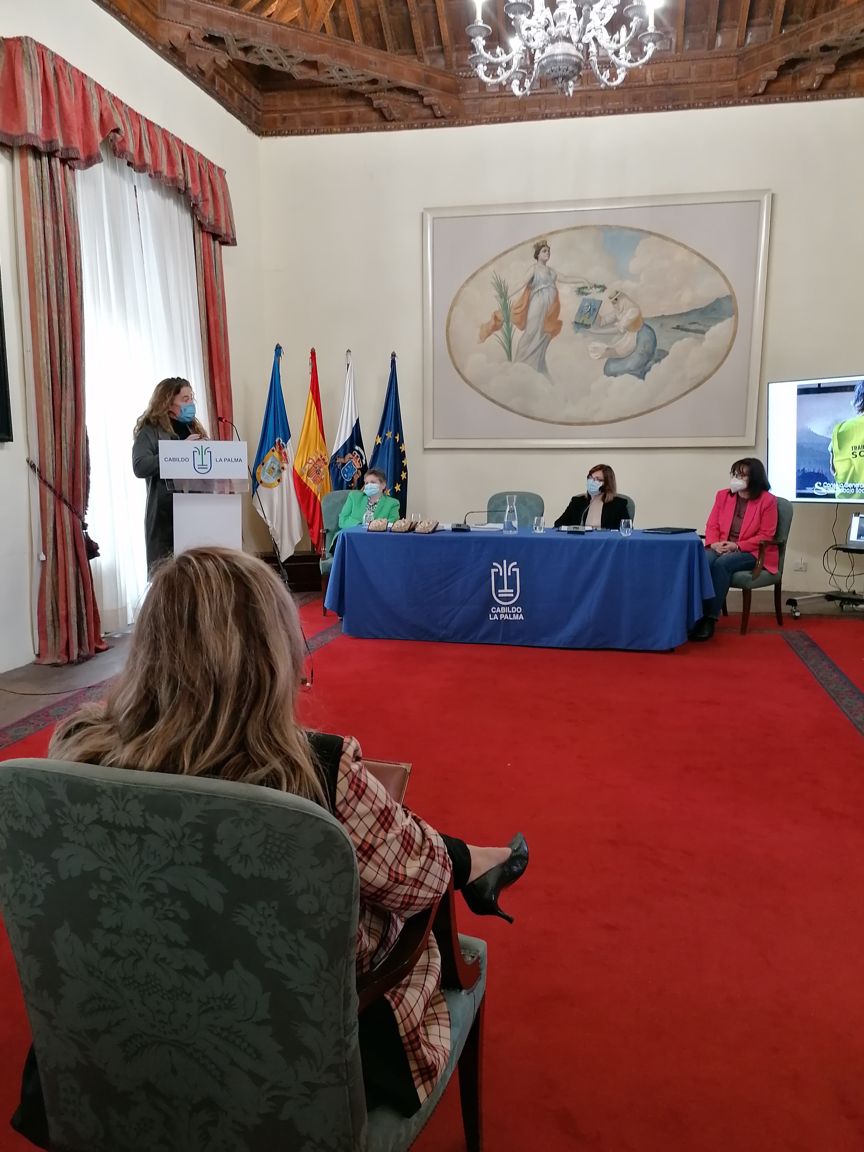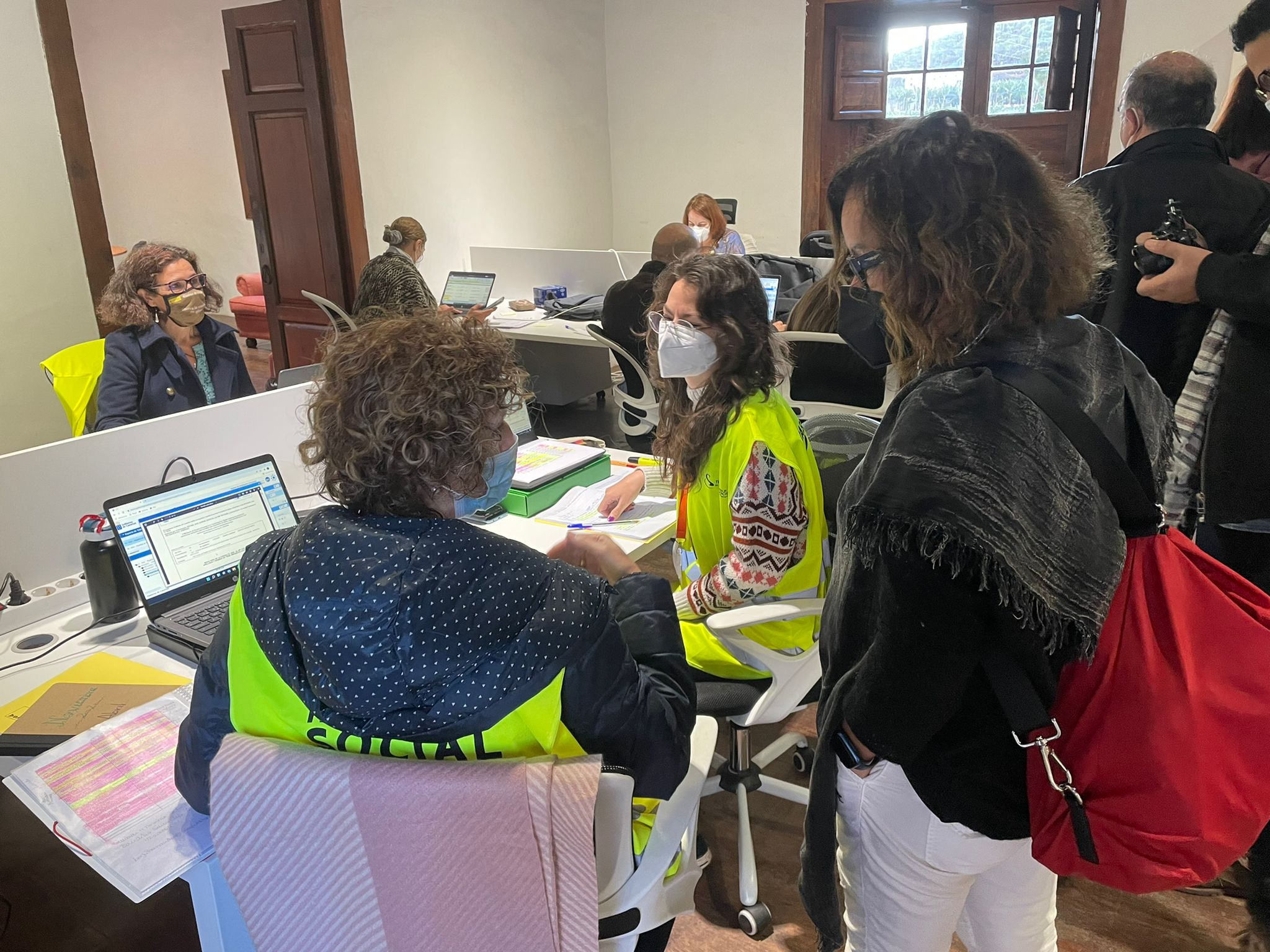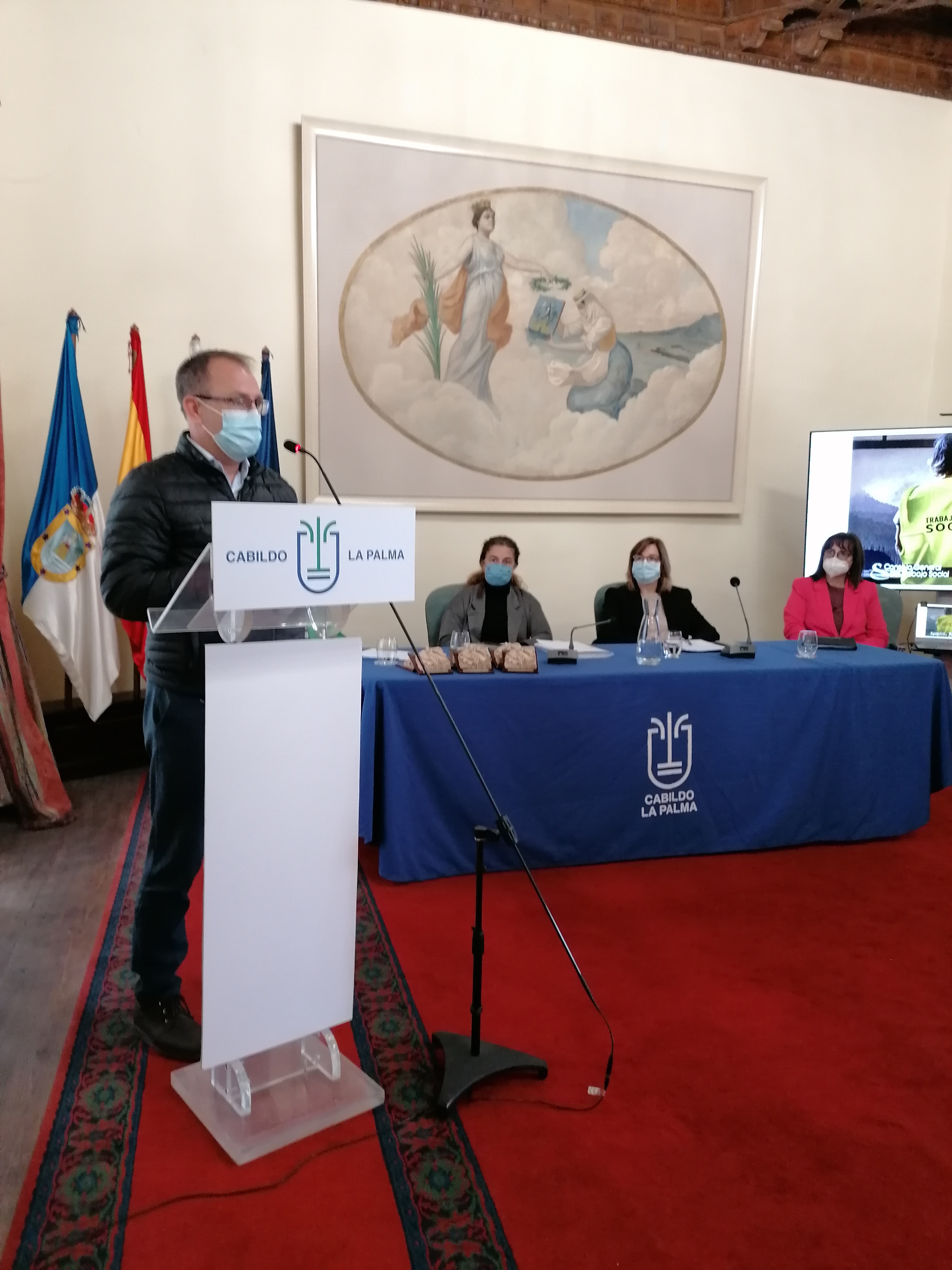 Por la tarde, en colaboración con el Colegio Oficial de Trabajo Social de santa Cruz de Tenerife, se ha organizado en Los Llanos de Aridane, la Jornada Técnica “EXPERIENCIAS DE INTERVENCIÓN SOCIAL EN EMERGENCIAS” para los/as trabajadores/as sociales colegiados en la isla y retransmitida a través del canal de Youtube del Consejo General del Trabajo Social.