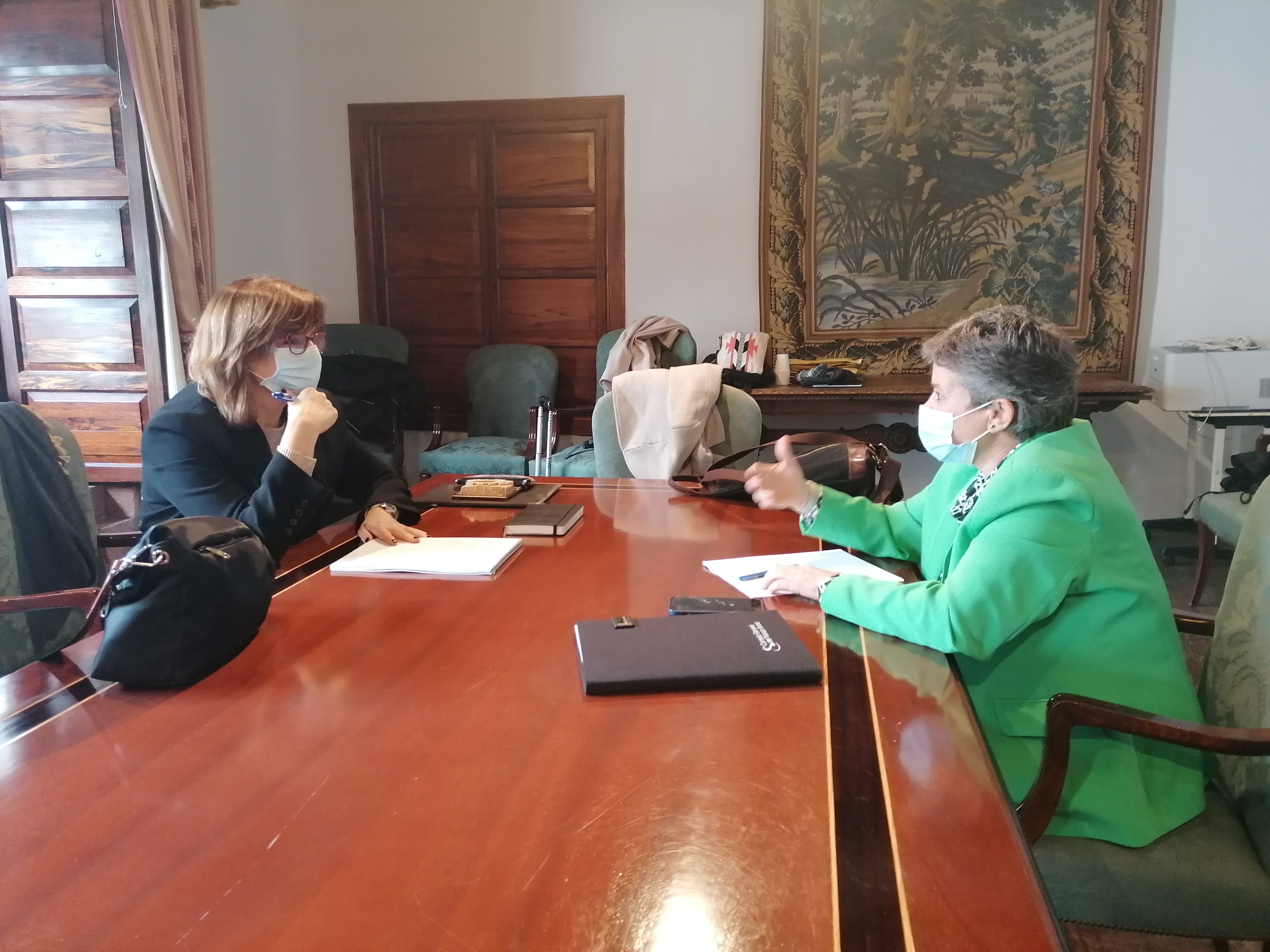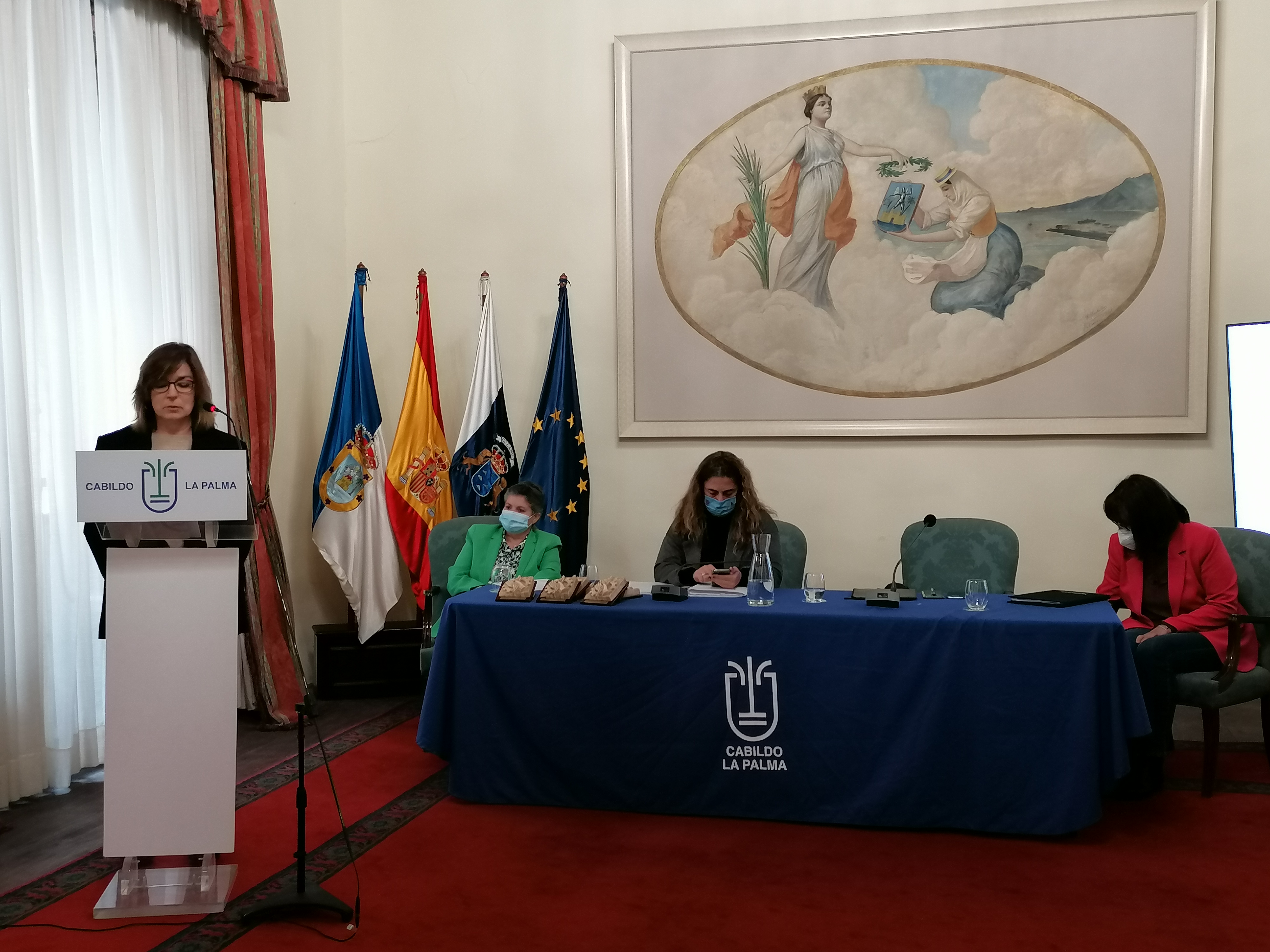 Antes de dicho encuentro, se ha mantenido una reunión con la Comisión Técnica de Emergencias que han trabajado desde antes de la erupción del volcán en la atención a las personas afectadas y la gestión de las ayudas, constituida por Mª Candelaria Delgado Toledo, presidenta, Elena Pérez Jerónimo, coordinadora del Equipo de intervención de La Palma, Joselizth Piteiro Barroso, del Instituto Canario de la Vivienda, Esther Margarita San Juan Espinosa y Pilar Rodríguez Remón, del Cabildo de La Palma, Lidia San Blas, del Ayuntamiento El Paso, Delsi Concepción Pérez, del Ayuntamiento Los Llanos, y María Nieves Rodríguez Martín, del Ayuntamiento Tazacorte.