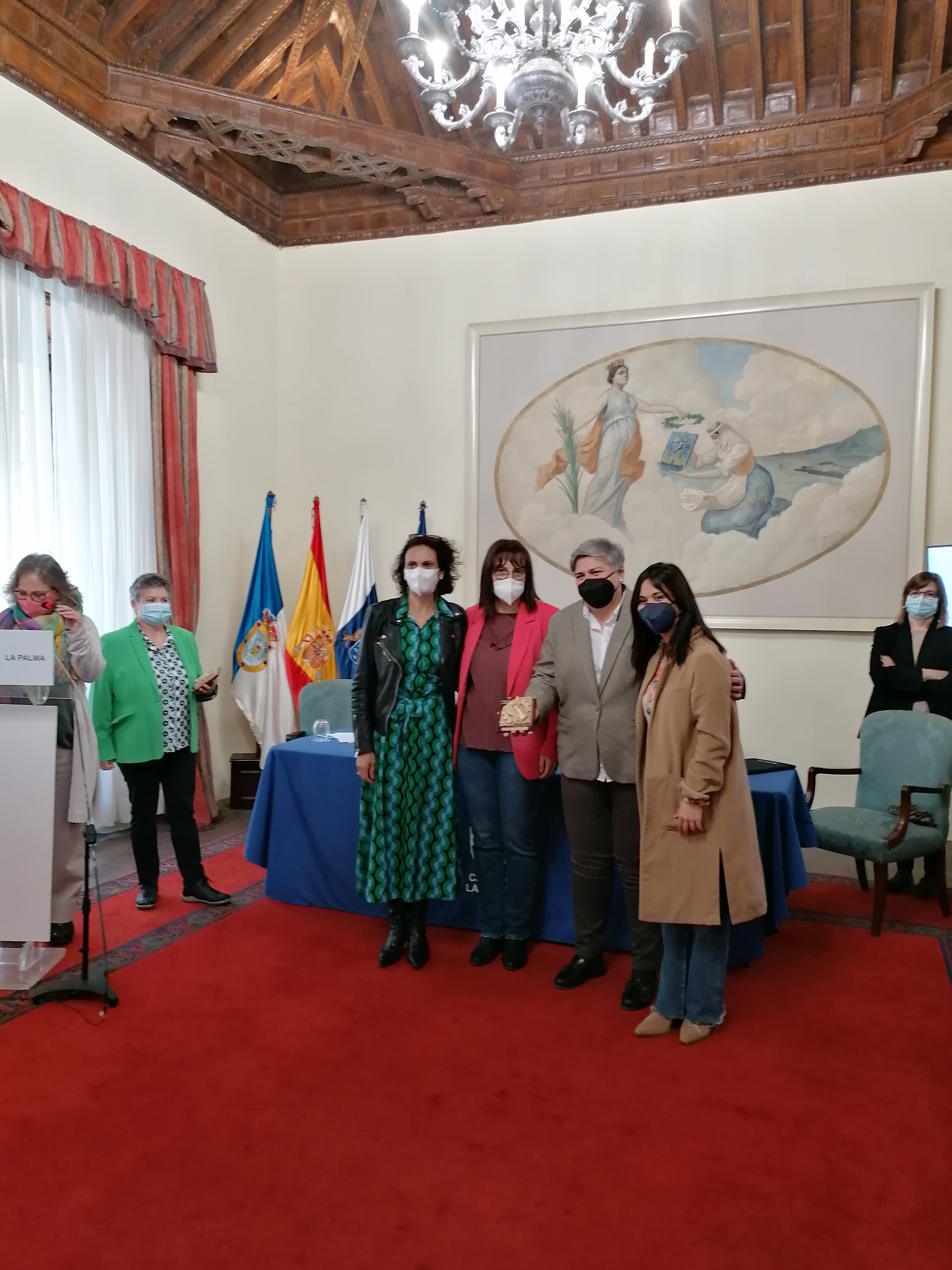 Para finalizar la visita a La Palma Emi Vicente, junto al Grupo Asesor, visitó la Oficina de Atención a las personas damnificadas en Casa Massieu de Los Llanos de Aridane. Allí la presidenta ha reconocido la labor del grupo de intervención y les ha otorgado la insignia de la profesión.