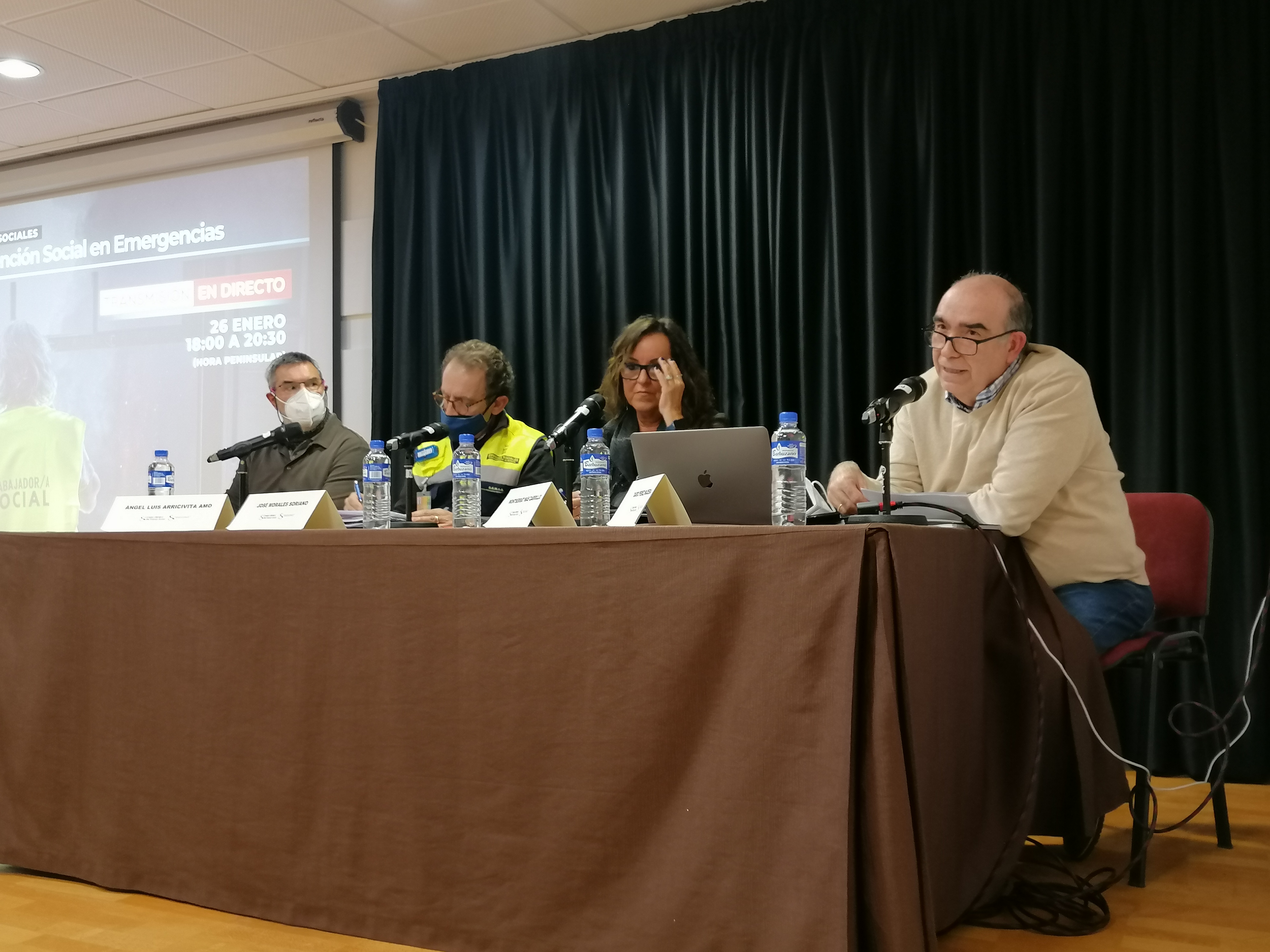 En la jornada se contó con la presencia de los/as expertos/as del Consejo Asesor del Grupo Estatal de Intervención en Emergencias Sociales del Consejo General del Trabajo Social, Darío Pérez, Ángel Luis Arricivita, Montse Mas y Pepe Morales que han compartido sus conocimientos y experiencias en la gestión de la emergencia.