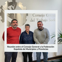 Emiliana Vicente, presidenta del Consejo general, ha mantenido una reunión con Joaquín Corcobado y Javier Frutos, representante de la Federación Española de Municipios y Provincias, con el fin de valorar acciones conjuntas para este 2023 y revisar el convenio firmado por ambas entidades.