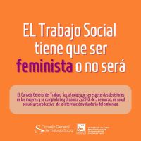 ➡EL Consejo General del Trabajo Social exige que se respeten las decisiones de las mujeres y se cumpla la Ley Orgánica 2/2010, de 3 de marzo, de salud sexual y reproductiva de la interrupción voluntaria del embarazo.