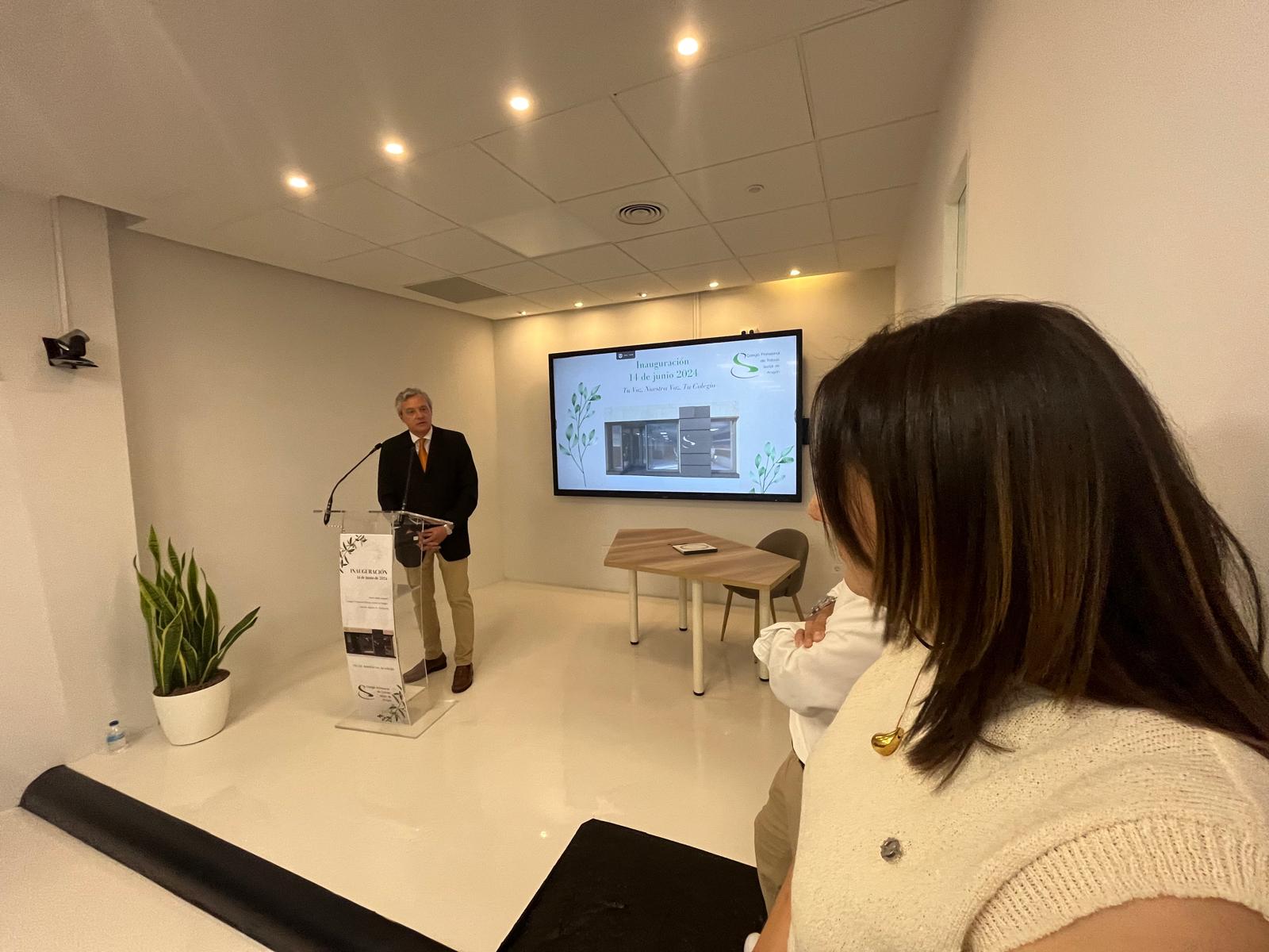 Éste felicito a la Junta de Gobierno y a la colegiatura de Aragón por la inauguración de la nueva sede y deseó: “que siga acogiendo proyectos, actividades para que nos permita ir avanzando en todos los retos que tenemos delante como profesión”.