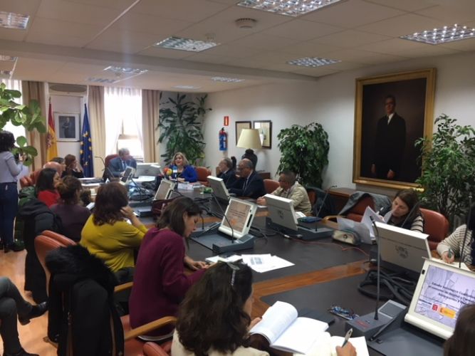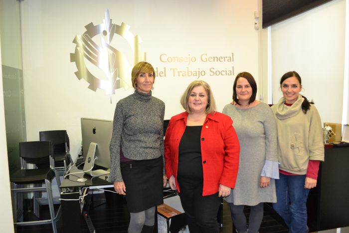 La ministra de Sanidad, Consumo y Bienestar Social, María Luisa Carcedo, recibe a la presidenta del CGTS, Emiliana Vicente, y los miembros de la Junta de Gobierno Rafael Arredondo y Raquel Millán