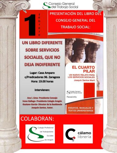 El 1 de febrero, a las 19 horas en la Casa Amparo de Zaragoza se presentará el libro: EL CUARTO PILAR, del trabajador social Joaquín Santos Martí.