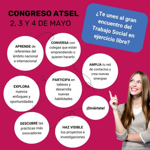 La Asociación de Trabajo Social en Ejercicio Libre llevará a cabo los próximos días 2, 3 y 4 de mayo en el Centro Joaquín Roncal de Zaragoza el III Congreso Nacional y II Internacional de Trabajo Social en Ejercicio Libre, donde también colaborar el Consejo General del Trabajo Social.
