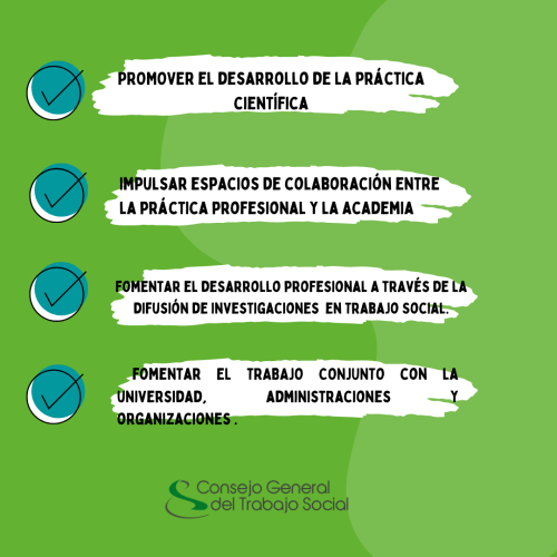El Trabajo Social apuesta por el fomento de la práctica científica, por el desarrollo profesional a través de la difusión de investigaciones y becas que apoyen la investigación, para este fin el Consejo General dispone del “El rincón de la Investigación” Es un espacio pensado para promover y apoyar investigaciones. Por ello, desde este espacio, daremos difusión a aquellas iniciativas que sean de interés para la profesión.