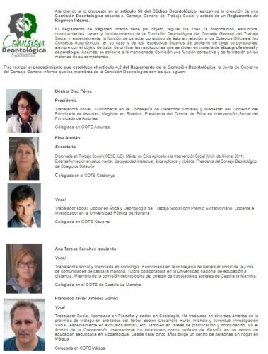 Nuevo mandato de la Comisión Deontológica del CGTS