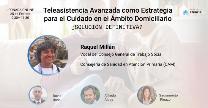 Raquel Millán, Vocal del Consejo General del Trabajo Social, participa en la jornada ‘Estrategias de cuidados en el domicilio ¿Solución definitiva?’ organizada por Atenzia, que ha tenido lugar el 25 de febrero de forma online.