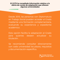 El Consejo General del Trabajo Social ha recopilado información relativa a la oferta de cursos de adaptación que ofrecen algunas universidades.